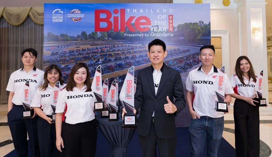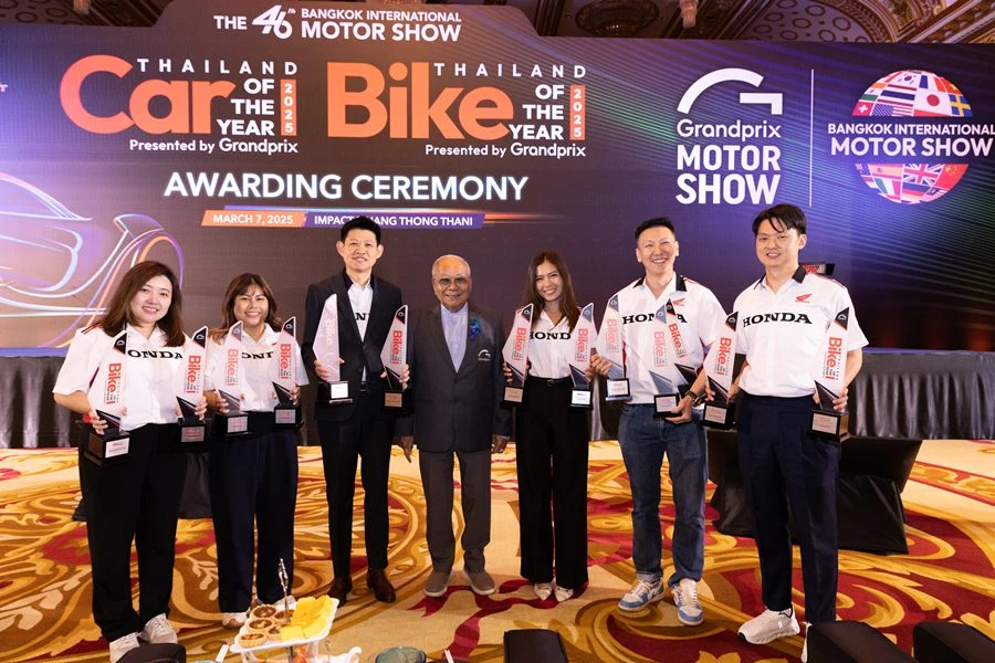 ไทยฮอนด้านำทีมโดย คุณนคร วิมลจิตรสะอาด ผู้จัดการทั่วไปสายงานการสื่อสารการตลาด บริษัท ไทยฮอนด้า จำกัด เป็นตัวแทนขึ้นรับรางวัลจาก คุณอโณทัย เอี่ยมลำเนา ประธานจัดงาน Bike of The Year 2025 และ ดร.ปราจิน เอี่ยมลำเนา ประธานเจ้าหน้าที่บริหาร บมจ.กรังด์ปรีซ์ อินเตอร์เนชั่นแนล