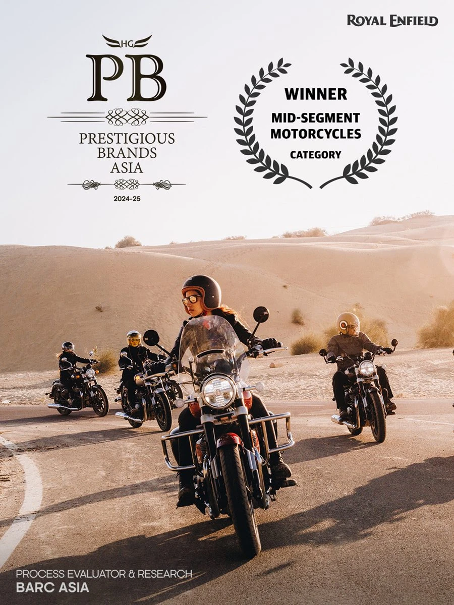 นอกจากนี้ โรยัล เอ็นฟีลด์ ยังสร้างชื่อเสียงอย่างต่อเนื่องในงาน Global Business Symposium 2025 ที่กรุงเทพฯ โดยได้รับ 2 รางวัลอันทรงเกียรติ ได้แก่ Pride of Asia และการยกย่องในฐานะ Prestigious Brands of Asia 2024-25 อีกทั้ง โมหิต ดาร์ จายาล (Mohit Dhar Jayal) ประธานเจ้าหน้าที่ฝ่ายแบรนด์ของโรยัล เอ็นฟีลด์ ยังได้รับรางวัล Marketing Meister อีกด้วย