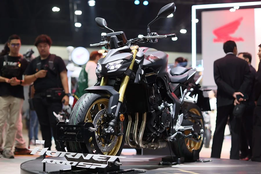 New Honda CB1000 Hornet SP ซูเปอร์ Naked ไบค์ระดับท็อปคลาส ผสานความแรงจากสนามแข่งเข้ากับการออกแบบที่ดุดันในแบบสปอร์ต Naked ให้ความแรงที่สุดในคลาสด้วยเครื่องยนต์ 1000 ซีซี 4 สูบเรียง พร้อมไปทุกเส้นทางด้วยโช้ก Öhlins ปรับได้เต็มรูปแบบควบคุมรถได้ดั่งใจ พร้อมปั๊มเบรก Brembo ให้ความแม่นยำทุกครั้งที่หยุดรถ ควบคุมง่ายดั่งใจด้วย Quick Shifter ที่ปรับได้ 3 ระดับ ระบบคันเร่งไฟฟ้า (Throttle-by-Wire), Riding Mode ที่ปรับได้ถึง 5 โหมด และ Honda Selectable Torque Control (HSTC) ที่ช่วยควบคุมการหมุนล้อหน้าและล้อหลังให้สัมพันธ์กัน แสดงผลด้วยเทคโนโลยีหน้าจอ TFT ขนาด 5 นิ้ว รองรับการเชื่อมต่อกับสมาร์ตโฟนผ่านแอปพลิเคชัน Honda RoadSync พร้อมไฟแบ็กไลท์ที่แฮนด์บาร์ใช้งานสะดวก เชื่อมต่อได้ทุกเส้นทาง New Honda CB1000 Hornet SP พร้อมวางจำหน่าย ‘สีดำ MAT BALLISTIC BLACK METALLIC’ ใน