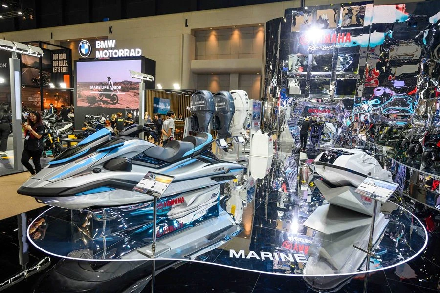 อีกทั้งยังมียานยนต์ทางน้ำอย่าง YAMAHA WaveRunner และ YAMAHA Super Jet รวมทั้งเครื่องแต่งกาย YAMAHA Apparel & Accessories