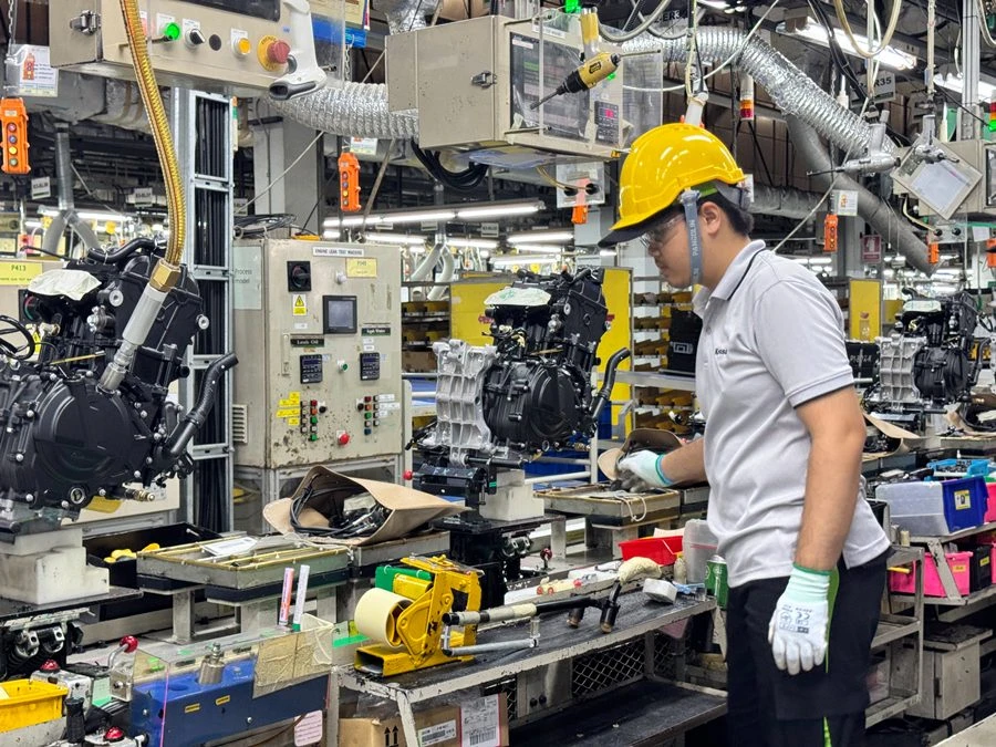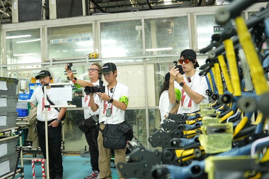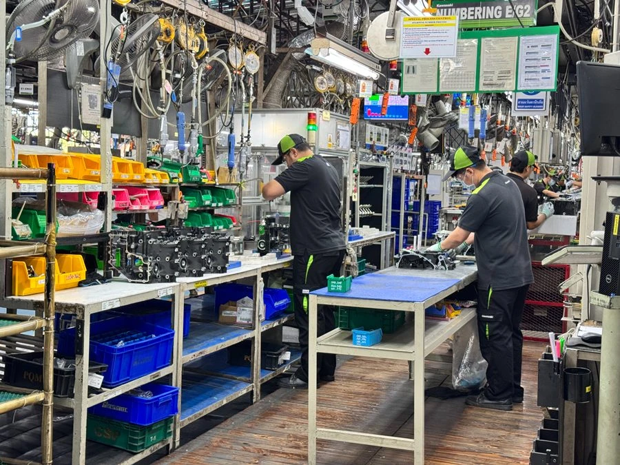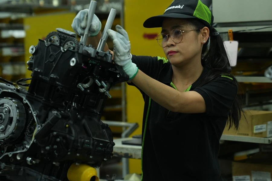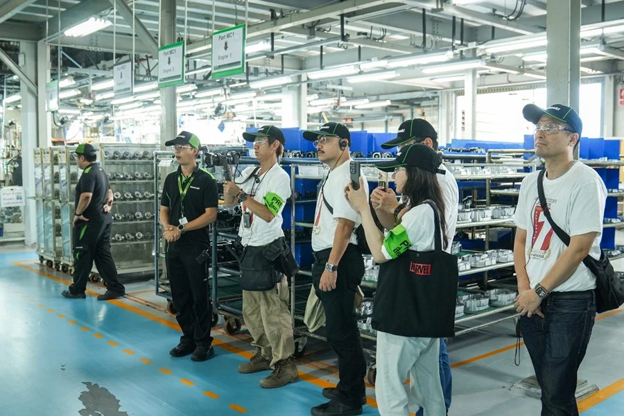 ช่วงเวลาที่น่าตื่นเต้นคือเมื่อทุกคนได้เข้าไปเยี่ยมชมไลน์ผลิต ตั้งแต่ประกอบเครื่องยนต์จนกลายเป็นรถจักรยานยนต์คันสมบูรณ์ เป็นประสบการณ์ที่น่าตื่นเต้นมาก ทุกคนไม่พลาดที่จะถ่ายรูปหมู่ไว้เป็นที่ระลึก และร่วมแสดงความยินดีกับความสำเร็จของ Eliminator กันก่อนออกจากส่วนการผลิต