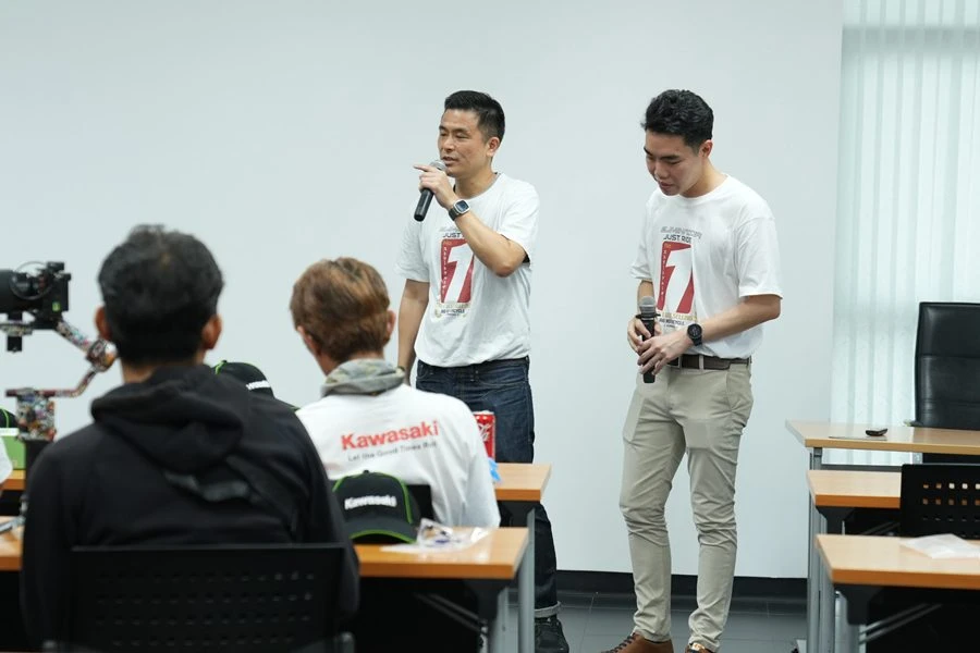 คุณมัตซึโมโต้ นาโอกิ ประธานบริษัท คาวาซากิ มอเตอร์ เอ็นเตอร์ไพรส์ (ประเทศไทย) จำกัด ให้เกียรติที่กล่าวต้อนรับด้วยความเป็นกันเอง