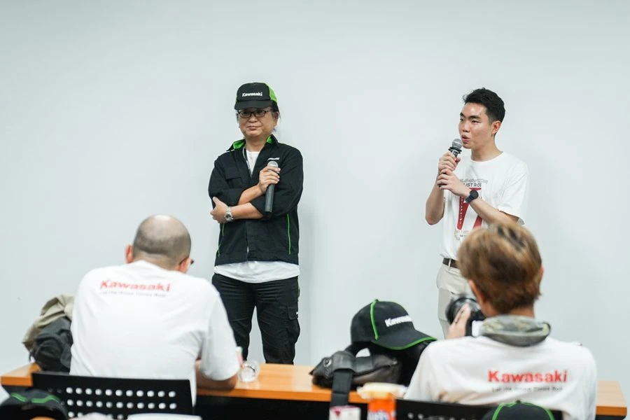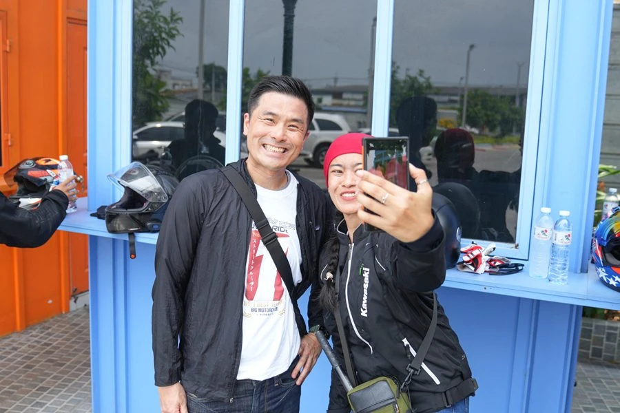 คุณยูซุเกะ ชิมาดะ ผู้อำนวยการฝ่ายขายและการตลาด ได้เป็นผู้นำขบวนผู้ร่วมทริปขับขี่เจ้า Eliminator ไปยังโรงงาน ซึ่งได้รับการต้อนรับอย่างอบอุ่นจากทีมงานคาวาซากิ นำโดย