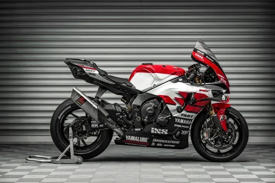โดยจะมาพร้อมกับลวดลายพิเศษสีแดง-ขาว ร่วมกับทีมโรงงาน Yamaha Racing Team (YRT) บนรถแข่ง YZF-R1 สีแดง-ขาวบนรถแข่งยามาฮ่าปรากฏเป็นครั้งแรกในปี 1964 และในปี 1973 สีนี้ถูกนำมาใช้กับ YZR500 (0W20) สำหรับฤดูกาลเต็มครั้งแรกของยามาฮ่าในศึกชิงแชมป์โลกคลาส 500cc นับแต่นั้นมา สีแดง-ขาวก็กลายเป็นสีสัญลักษณ์ของรถแข่งยามาฮ่า
