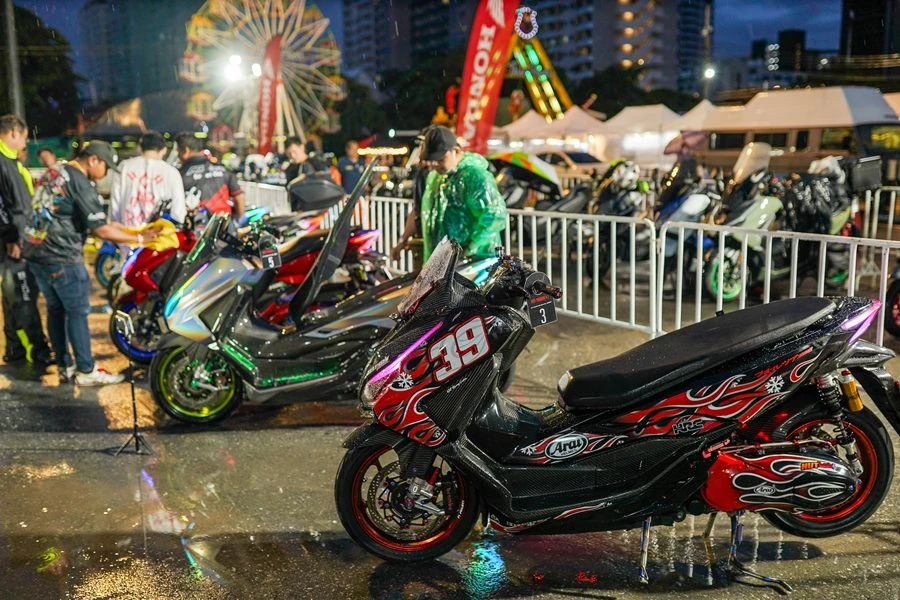 • ประกวดรถแต่ง “Customize Contest” เปิดเวทีให้เจ้าของรถและสำนักแต่งโชว์ของกันเต็มพิกัดท่ามกลางสายฝน โดยผู้เข้าร่วมได้ร่วมโหวตรถที่ชื่นชอบในรุ่น Forza350 และ ADV350 เพื่อลุ้นรางวัลรวมมูลค่ากว่า 60,000 บาท ขณะที่รุ่น PCX160, ADV160, LEAD และ GIORNO+ ตั้งโชว์อวดโฉมอย่างภาคภูมิใจ พิเศษกับรางวัล “HEADSHOT” ที่มอบให้กับรถแต่งที่โดนใจทีมแต่งมืออาชีพมากที่สุด ยิ่งเพิ่มความภาคภูมิใจให้กับเจ้าของรถอย่างแท้จริง
