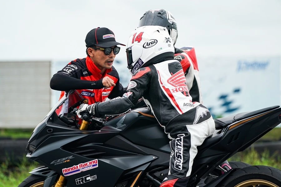 นักแข่งที่ผ่านการประเมินจะได้ก้าวขึ้นไปฝึกด้วยรถ Honda CBR150R ซึ่งมีความแตกต่างออกไปเมื่อเทียบกับรถแข่ง Honda NFS100 ทั้งในด้านการควบคุมรถที่มีขนาดใหญ่ น้ำหนักรถ การใช้ร่างกายและการควบคุมคันเร่ง เบรก โดยมี Mr. Shinichi Ito ชี้จุดเป็นรายบุคคลในแต่ละจุดที่ต้องพัฒนา เพื่อให้เห็นภาพชัดเจนว่าควรจะปรับปรุงอย่างไร และอยู่ในระดับใดเมื่อเทียบกับมาตรฐานระดับสากล