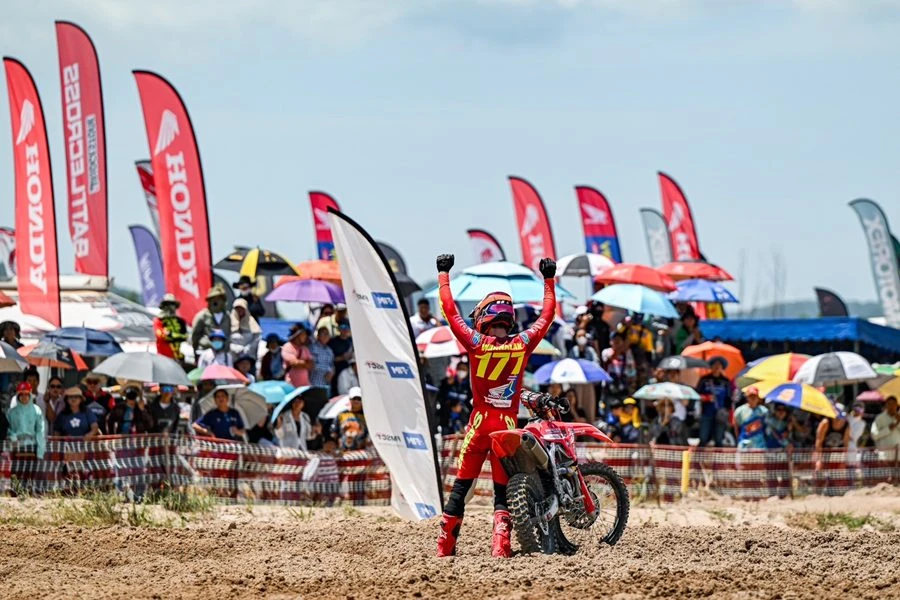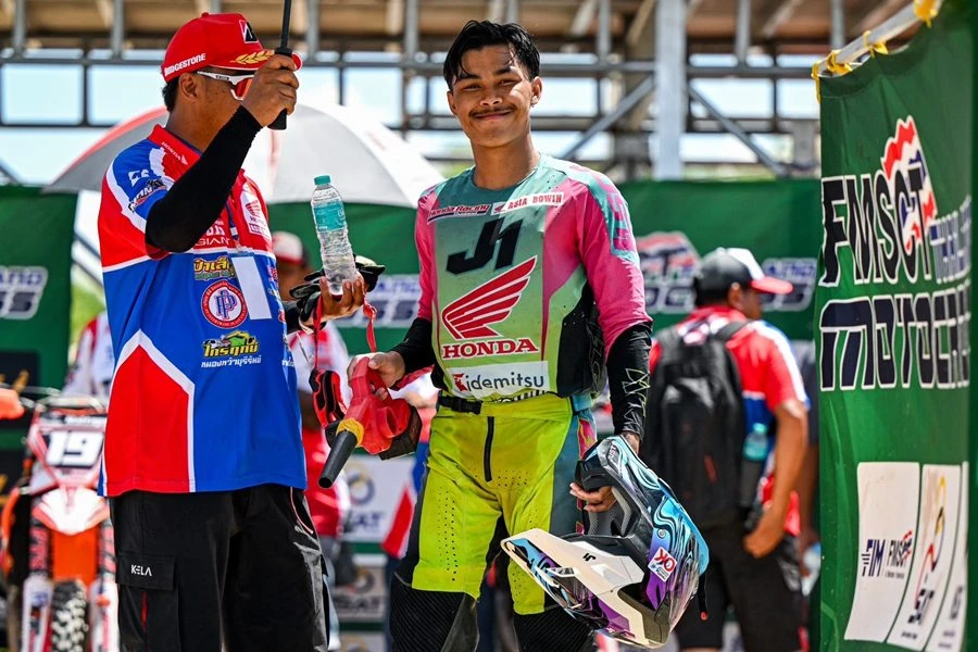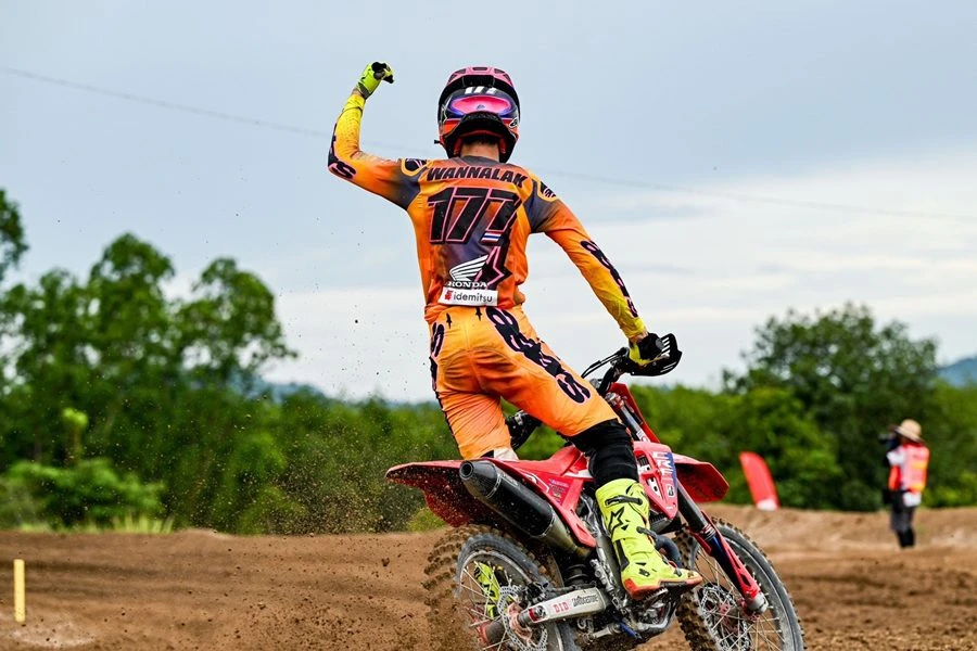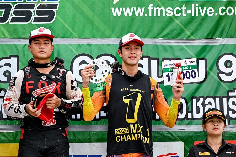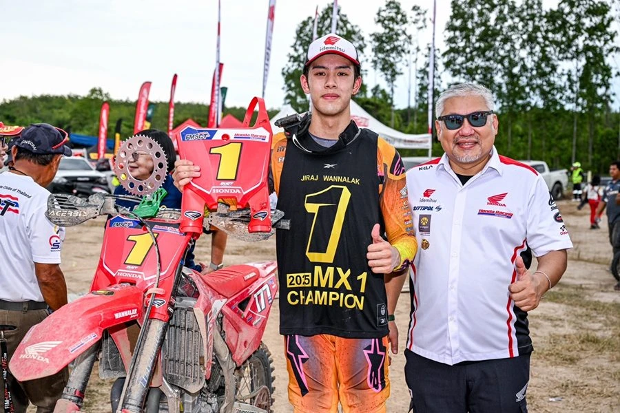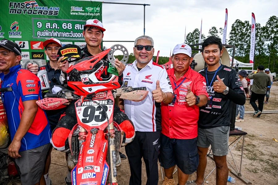 จากผลงานของ นีโม่-จิรัฎฐ์ และรถแข่งทางฝุ่น Honda CRF450R หมายเลข 177 หลังจากที่ ศึกทางฝุ่นชิงแชมป์ประเทศไทย ยกระดับพิกัดการแข่งขันเพื่อเทียบเท่ากับเกมความเร็วระดับโลก พร้อมกวดอีกแชมป์ในรุ่นท็อปของรายการอย่าง Pro MX-2 ควบคู่ไปกับการทำผลงานของทัพนักบิด Honda CRF450R ขณะที่ฮอนด้าขอต่อยอดปีทอง สานต่อความสำเร็จด้วยการป้องกันแชมป์ในซีซั่นหน้า พร้อมพัฒนาและดันนักแข่งไทยสู่การแข่งขันระดับโลก ศึก FMSCT Thailand Motocross 2025 สนามที่ 10 แข่งขันกันต่อเนื่องที่สนามศูนย์ฝึกกีฬามอเตอร์สปอร์ตแห่งประเทศไทยภาคตะวันออก ห้วยใหญ่ จ.ชลบุรี