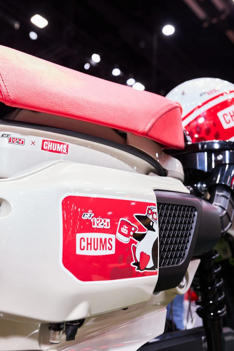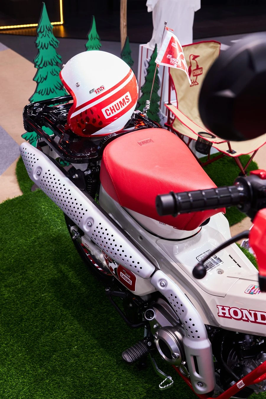 สำหรับ New Honda CT125 CHUMS Limited Edition ออกแบบมาเพื่อตอบโจทย์สายเทรลโดยเฉพาะ ด้วยแร็คไฟหน้าสีแดงสดใส กราฟิกรอยเท้าหมี Grizzly สุดน่ารัก มาพร้อมเบาะหนังสีแดงสดที่เข้าชุดกับตัวรถสีขาวอย่างลงตัว เสริมความพิเศษด้วยโลโก้ CHUMS และชุดการ์ดแฮนด์ Barkbusters ที่พร้อมลุยได้ทุกเส้นทาง เปิดตัวพร้อมราคาแนะนำ 98,900 บาท โดยผู้ที่ได้ครอบครองยังได้รับ Camp Gadget พรีเมียมเซ็ต อาทิ เก้าอี้แคมป์, แก้วเก็บอุณหภูมิ CHUMS, เสื้อยืดลิมิเต็ด และหมวกกันน็อกเข้าเซ็ต พร้อม Serial Number เฉพาะไม่ซ้ำใคร