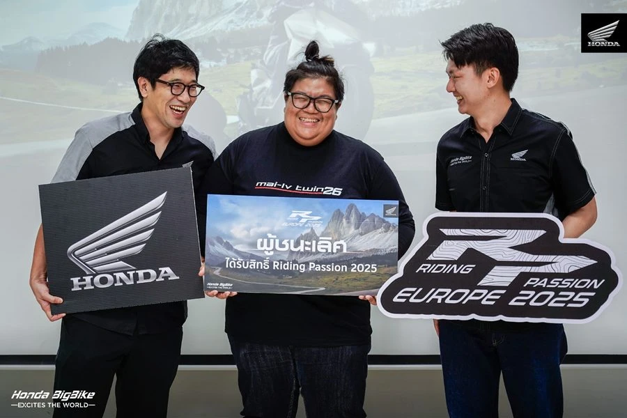 ฮอนด้าบิ๊กไบค์ ประกาศผลผู้ชนะกิจกรรม Honda BigBike Riding Passion Europe 2025 ที่เฟ้นหาผู้ชนะเพียงหนึ่งเดียวมาตลอดหนึ่งเดือน เพื่อคว้าสิทธิ์ครั้งหนึ่งในชีวิตในการออกไปพิชิตเส้นทางธรรมชาติสุดอลังการของยุโรป โดยผู้ที่ได้รับเลือกคือ คุณ Pariwat Kaato Sukcharoen ซึ่งจะได้ขับขี่รถจักรยานยนต์ฮอนด้าบิ๊กไบค์ออกเดินทางบนเส้นทางในฝัน ครอบคลุม 3 ประเทศ ได้แก่ อิตาลี สวิตเซอร์แลนด์ และออสเตรีย ตลอดทริป 9 วัน 7 คืน