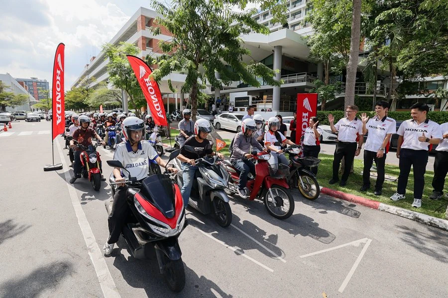 สถาบันเทคโนโลยีพระจอมเกล้าเจ้าคุณทหารลาดกระบัง (สจล.) ทั้งนี้ ไทยฮอนด้า เดินหน้าส่งเสริมวัฒนธรรมการขับขี่ปลอดภัยอย่างต่อเนื่อง ภายใต้โครงการรณรงค์ความปลอดภัยทางถนนระดับประเทศ “60 ปี ไทยฮอนด้า ขับขี่ปลอดภัย เพื่อสังคมไทยที่ยั่งยืน” โดยได้มอบหมวกกันน็อกมาตรฐาน มอก. จำนวน 500 ใบ ให้แก่ สถาบันเทคโนโลยีพระจอมเกล้าเจ้าคุณทหารลาดกระบัง (สจล.)