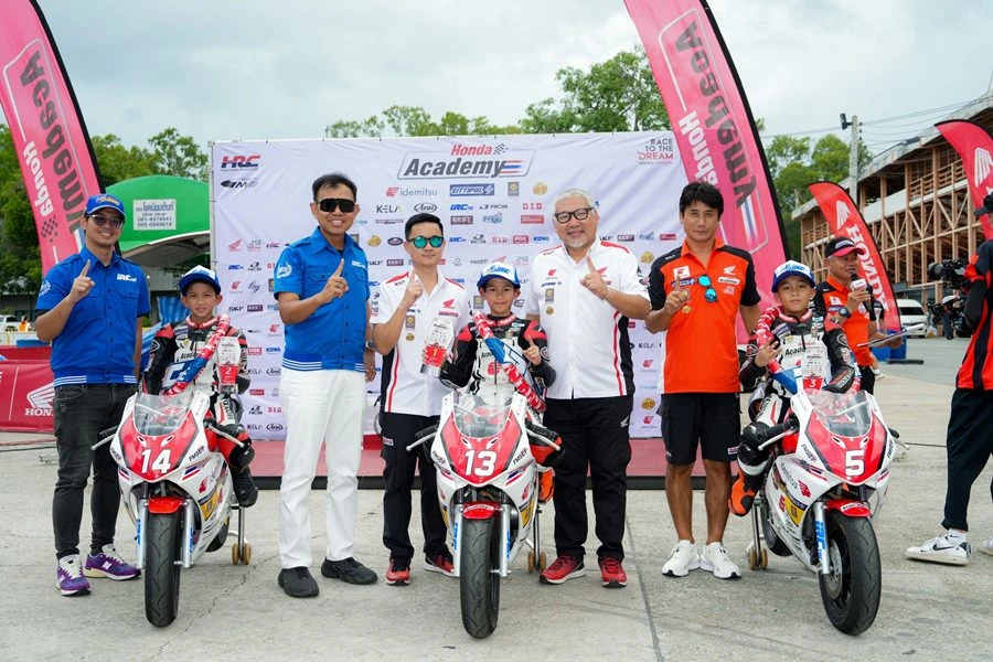 ปิดฉากฤดูกาล ฮอนด้า อะคาเดมี่ ไทยแลนด์ 2025 สนามที่ 6 ณ พีระ คาร์ท พัทยา เมื่อสุดสัปดาห์ที่ผ่านมา วันที่ 6–7 กันยายน 2568 เข้มข้นสุดมันส์ ภายใต้โครงการ Race to the Dream โดยปีนี้นักบิดเยาวชน 13 คน ผ่านการฝึกอย่างเข้มข้น ทั้งร่างกายและทักษะการควบคุม Honda NSF100 และ Honda CBR150R ภายใต้การดูแลของโค้ชญี่ปุ่น มร.ชินอิจิ อิโต้ และทีมโค้ชไทย โค้ชมุกข์-มุกข์ลดา สารพืช และ โค้ชดรีม-สิทธิศักดิ์ อ่อนเฉวียง ร่วมวางแผนการฝึกโดยเน้นความแข็งแกร่งของร่างกาย