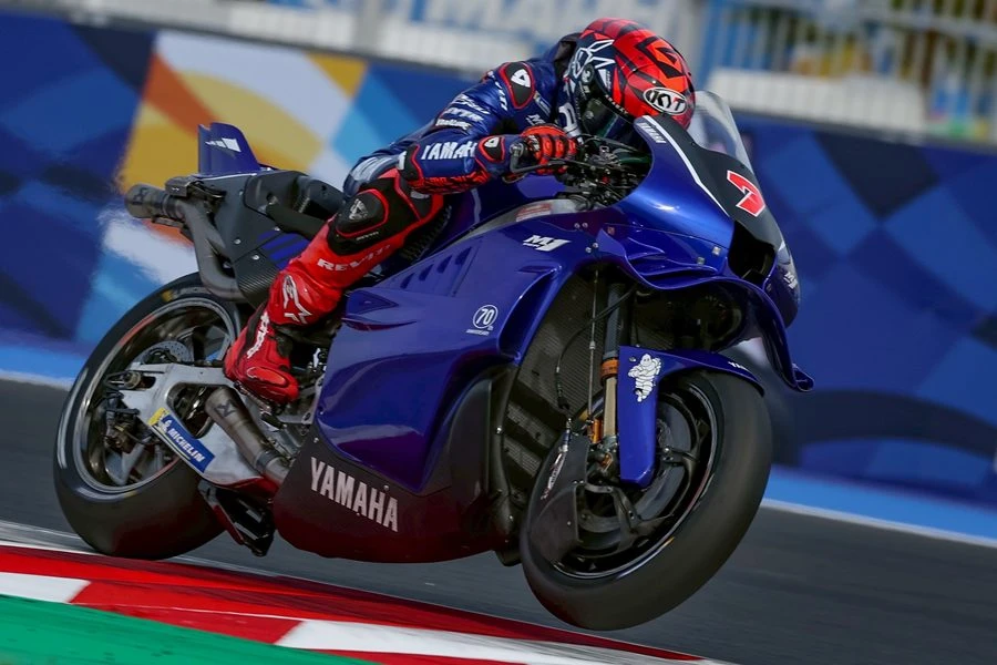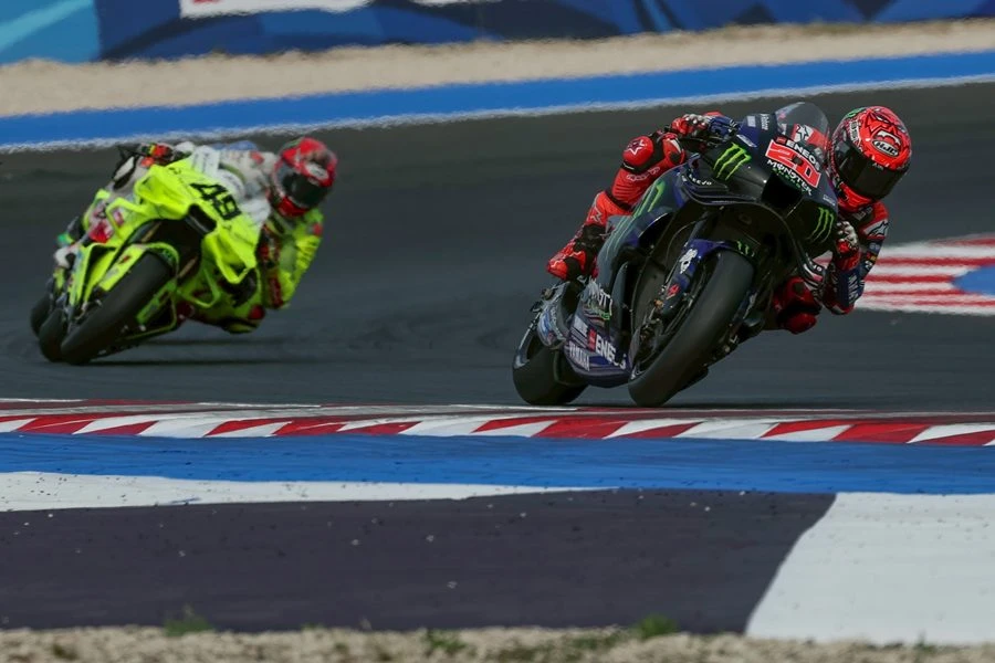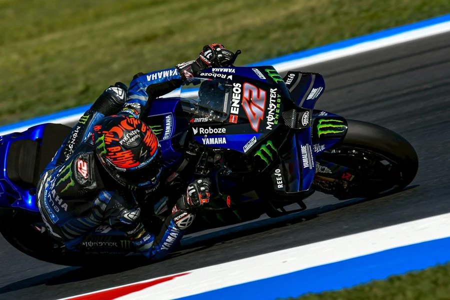 เอลดิอาโบล-ฟาบิโอ กวาร์ตาราโร ยอดนักบิดเฟรนช์จาก มอนสเตอร์ ยามาฮ่า ควบรถแข่ง YZR-M1 เค้นสุดความสามารถบิดคว้าท็อป 8 ในศึก โมโตจีพี 2025 สนาม 16 รายการ ซาน มาริโน กรังด์ปรีซ์ ในเรซสุดหิน ขณะรถต้นแบบ M1 V4 เปิดตัวยอดเยี่ยมกับเรซเป็นทางการครั้งแรกที่ มิซาโน เวิลด์ เซอร์กิต มาร์โก ซิมอนเชลลี ประเทศอิตาลี หนึ่งในสนามที่ได้รับการจับตาจากแฟนมอเตอร์สปอร์ตทั่วโลก