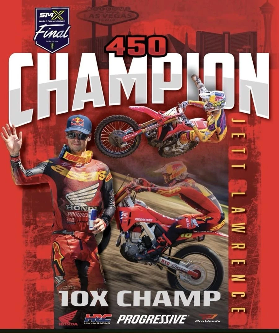 ผลการแข่งขันสนามสุดท้าย ส่งฮอนด้าขึ้นครองบัลลังก์แชมป์โลกประจำซีซั่นนี้ด้วยความยอดเยี่ยมของสมรรถนะรถแข่ง Honda CRF450R และผลงานยอดเยี่ยมของนักบิดชาวออสเตรเลีย เจ็ตต์ ลอว์เรนซ์ โดยมีทีมเมท ฮันเตอร์ ลอว์เรนซ์ ตามมาติด ๆ เป็นอันดับที่ 2 ในตารางแชมเปียนชิพซึ่งตอกย้ำความยอดเยี่ยมของฮอนด้าด้วยการเหมาอันดับที่ 1 – 2 ในซีซั่นนี้