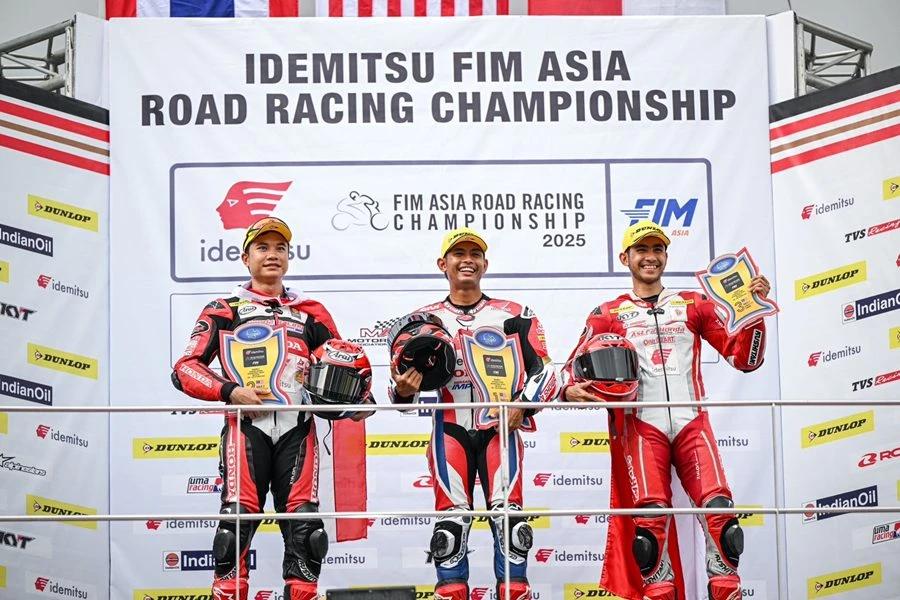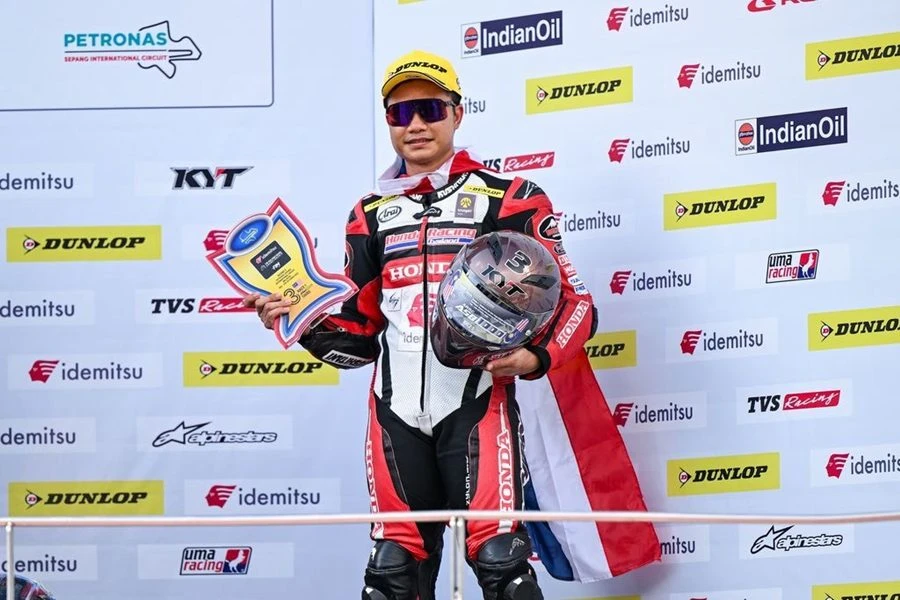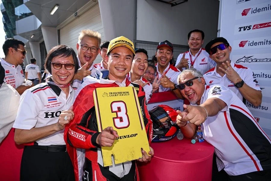 ฮอนด้า เรซซิ่ง ไทยแลนด์ ทีมไทยร้อยเปอร์เซ็นต์ยกระดับผลงาน ในการแข่งขันศึก FIM Asia Road Racing Championship 2025 สนาม 5 ที่สนามเซปัง อินเตอร์เนชั่นแนลเซอร์กิต ประเทศมาเลเซีย โดย ชิพ-นครินทร์ อธิรัฐภูวภัทร์ ทะยาน Honda CBR1000RR-R คว้าโพเดียมบวกแต้มทะยานขึ้นเป็นผู้นำในตารางคะแนนสะสม ลุ้นแชมป์ประจำฤดูกาลในสนามสุดท้ายที่ประเทศไทยกับรุ่นท็อปสุดของรายการ เอเชีย ซูเปอร์ไบค์ 1,000 ซีซี (ASB1000) ขณะที่ ซูเปอร์สปอร์ต 600 ซีซี (SS600) ดาวรุ่งไทย มิกซ์-ธนัช ละอองปลิว & ข้าวกล้อง-จักรีภัทร พฤฒิสาร สอบผ่านเกมยากทำผลงานบวกคะแนนสะสมในตารางแชมเปี้ยนชิพ