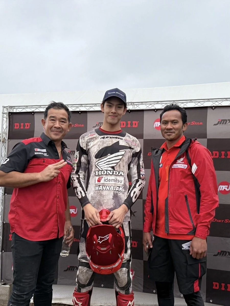 ฮอนด้า เรซซิ่ง ไทยแลนด์ ยกระดับความสำเร็จในการแข่งขันรายการทางฝุ่นสู่ระดับนานาชาติ จากผลงานของ นีโม่-จิรัฎฐ์ วรรณลักษณ์ ยอดนักบิดทางฝุ่น เจ้าของแชมป์ Premier MX-1 คนแรกของประเทศไทย พารถแข่งทางฝุ่น Honda CRF450R สร้างประวัติศาสตร์ความเร็วต่อเนื่อง ก่อนประกาศผลงานคว้าโพเดียมอันดับที่ 2 รุ่นท็อปสุดของรายการ IA-1 450 โดยเป็นโพเดียมครั้งแรกของนักแข่งไทยในรายการ D.I.D All Japan Motocross Championship สนามที่ 6 ไซตามะ ประเทศญี่ปุ่น เมื่อวันที่ 19 ตุลาคม 2568 ที่ผ่านมา