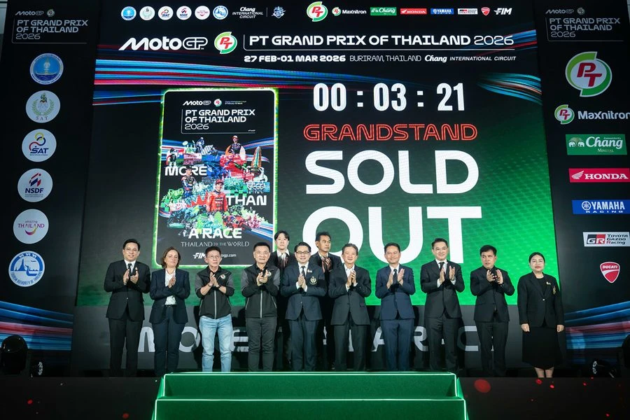 การแถลงข่าวจัดการแข่งขันและเปิดจำหน่ายบัตร จัดขึ้นที่ห้องประชุมชั้น 25 การกีฬาแห่งประเทศไทย (หัวหมาก) โดยบัตรชมศึกรถจักรยานยนต์ชิงแชมป์โลก MotoGP รายการ พีที กรังด์ปรีซ์ ออฟ ไทยแลนด์ 2026 (PT Grand Prix of Thailand 2026) โดยประเทศไทยเป็นเจ้าภาพ การทดสอบก่อนเปิดฤดูกาล หรือ Pre-Season Test วันที่ 21-22 ก.พ. และ สนามที่ 1 วันที่ 27 ก.พ. - 1 มี.ค. 2569 ที่ สนามช้าง อินเตอร์เนชั่นแนล เซอร์กิต จ.บุรีรัมย์ โดยมี ตัวแทนภาครัฐและเอกชน ทัพสื่อมวลชนและผู้ร่วมงานมากกว่า 400 คน ถือเป็นงานแถลงข่าวที่ยิ่งใหญ่ที่สุดประจำปีของไทย