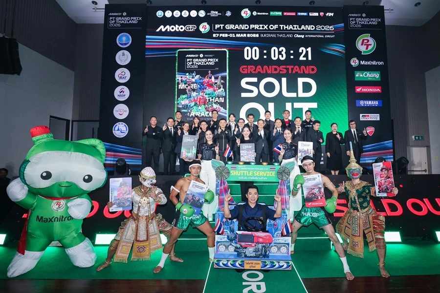 นายภาณุพล กิตติคำรณ ผู้จัดการใหญ่ด้านการค้า, นายอุกฤษณ์ ภาควิวรรธ รองผู้จัดการใหญ่ด้านวางแผนการค้าและการตลาด พร้อมด้วยคณะผู้บริหารระดับสูง บริษัท ไทยยามาฮ่ามอเตอร์ จำกัด ได้รับเกียรติถ่ายภาพร่วมกับ ดร.ก้องศักด ยอดมณี ผู้ว่าการการกีฬาแห่งประเทศไทย, มิส อัมปาโร ปอร์โต ผู้อำนวยการอาวุโส ดอร์น่า สปอร์ต เจ้าของลิขสิทธิ์การแข่งขัน MOTOGP, นายโชติชนก ชิดชอบ ผู้จัดการฝ่ายกิจกรรมต่างประเทศ สนามช้าง อินเตอร์เนชั่นแนล เซอร์กิต และนายตนัยศิริ ชาญวิทยารมณ์ กรรมการผู้อำนวยการ สนามช้าง อินเตอร์เนชั่นแนล เซอร์กิต ในงานแถลงข่าวความพร้อมการเป็นเจ้าภาพจัดการแข่งขันจักรยานยนต์ทางเรียบชิงแชมป์โลก PT GRAND PRIX OF THAILAND 2026 ภายใต้แนวคิด MORE THAN A RACE พร้อมเปิดจำหน่ายบัตรเข้าชมอย่างเป็นทางการ