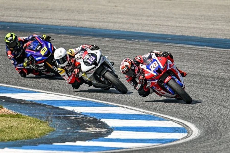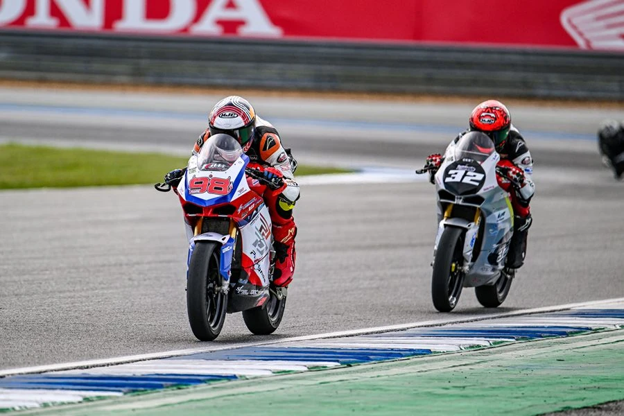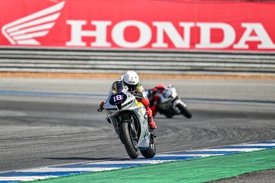 ในเรซที่ 1 3 นักบิดดาวรุ่งฮอนด้าเดือดสนั่นบุรีรัมย์! บิด Honda CBR พาเหรดขึ้นโพเดียม สำหรับรุ่น SB1 Pro ไฮไลท์ของรายการที่ดวลกันด้วยรถแข่งที่เร็วและแรงที่สุด ดาวรุ่งไทยฮอนด้า มิกซ์-ธนัช หมายเลข 31 จาก อิเดมิตสึ ฮอนด้า ทีม คริสมาส บิด Honda CBR1000RR-R ทำเวลาในการควอลิฟายมาในกริดที่ 2 เริ่มต้นเกมได้อย่างแข็งแกร่งชาร์จความเร็วขึ้นมาเป็นผู้นำได้ทันที โดยปักหลักดวลความเร็วกับคู่แข่งที่มีประสบการณ์มากกว่าเพื่อลุ้นชัยชนะ