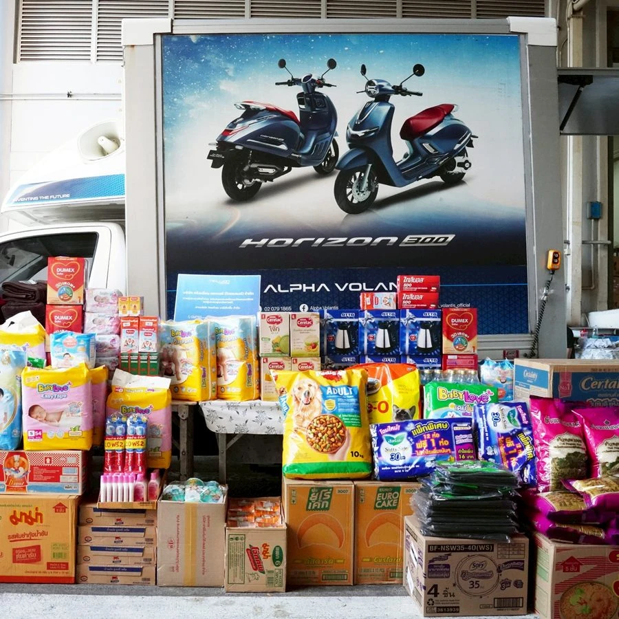 .ท่ามกลางสถานการณ์อุทกภัยในพื้นที่ภาคใต้ ที่กำลังกระทบประชาชนเป็นจำนวนมาก บริษัท ทริลเลี่ยน มอเตอร์ (ไทยแลนด์) จำกัด ผู้จัดจำหน่ายรถจักรยานยนต์ Alpha Volantis ร่วมเป็นส่วนหนึ่งเพื่อช่วยสังคมไทย ส่งต่อความห่วงใยพี่น้องชาวใต้ ด้วยการส่งมอบสิ่งของอุปโภค-บริโภค รวมถึงของใช้จำเป็น มอบให้กับ บริษัท ไทยดำรง มาร์เก็ตติ้ง จำกัด (Camera Baby Thailand) เพื่อเป็นตัวแทนส่งไปยังพื้นที่ที่ได้รับผลกระทบ