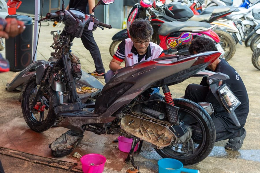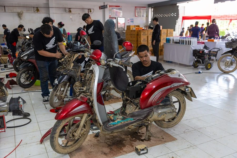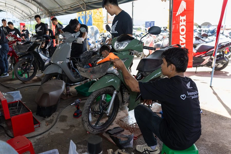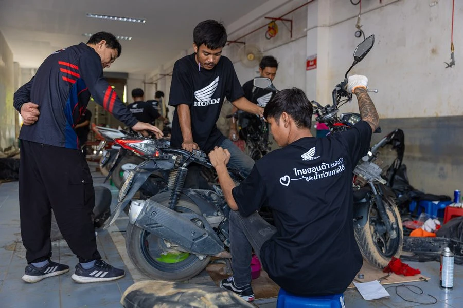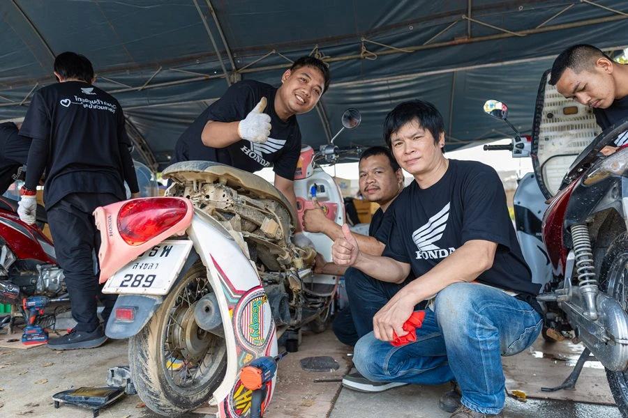 โดยทีมช่างมืออาชีพและอาสาสมัครช่างจากศูนย์บริการฮอนด้าได้เร่งฟื้นฟูรถจักรยานยนต์ทุกคัน ตั้งแต่รถที่ได้รับผลกระทบเล็กน้อยไปจนถึงรถที่เสียหายจนไม่สามารถใช้งานได้ ทีมช่างได้ตรวจสอบระบบสำคัญ ล้างโคลนที่ตกค้างในชิ้นส่วน และเปลี่ยนของเหลวที่ได้รับผลกระทบ เพื่อให้รถกลับมาพร้อมใช้งานอย่างปลอดภัย ทั้งนี้ หากรถที่จมน้ำไม่ได้รับการดูแลอย่างถูกวิธี อาจเกิดปัญหาระยะยาว เช่น ระบบไฟฟ้าลัดวงจร เครื่องยนต์สึกหรอจากความชื้น หรือโคลนอุดตันในระบบต่าง ๆ ซึ่งล้วนเป็นความเสียหายที่จำเป็นต้องได้รับการซ่อมโดยผู้เชี่ยวชาญเท่านั้น