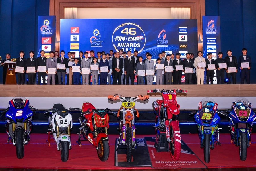 งาน FMSCT Champion Awards 2025 พิธีมอบรางวัลแชมป์ประเทศไทยในการแข่งขันรถจักรยายนต์ที่รับรองโดย สมาคมกีฬาแข่งรถจักรยานยนต์แห่งประเทศไทย โดยงานครั้งนี้ได้รับเกียรติจาก นายอรรถกร ศิริลัทธยากร (รักษาการ)รัฐมนตรีว่าการ กระทรวงการท่องเที่ยวและกีฬา ร่วมงานพร้อมเป็นผู้มอบรางวัลนักกีฬาสร้างชื่อเสียงให้ประเทศ ร่วมกับ คุณธงชัย วงษ์สวรรค์ ประธานสมาพันธ์ (FMSCT) และนายกสมาคมฯ (MSAT) ทีม ฮอนด้า เรซซิ่ง ไทยแลนด์ กวาดรางวัลจากความสำเร็จในการแข่งขันรวมถึงการสร้างชื่อเสียงให้กับประเทศไทย สะท้อนผลสำเร็จจากความมุ่งมั่นในการวางรากฐานพัฒนานักบิด สนับสนุนเยาวชนนักแข่งไทย รวมถึงมอบโอกาสในการลงสนามแข่งขันมาอย่างต่อเนื่อง โดยมีนักแข่งที่ได้รับรางวัลประเภทต่าง ๆ และรายการที่ลงแข่งขัน ดังนี้