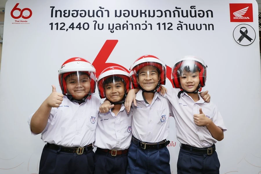 ด้าน นายฮายาโตะ เซกุจิ รองประธานกรรมการบริหาร บริษัท ไทยฮอนด้า จำกัด กล่าวว่า “เนื่องในโอกาสครบรอบ 60 ปี ไทยฮอนด้า บริษัทฯ ได้ดำเนินโครงการภายใต้แนวคิด ‘60 ปี ไทยฮอนด้า ขับขี่ปลอดภัย เพื่อสังคมไทยที่ยั่งยืน’ โดยตั้งใจส่งมอบหมวกกันน็อกจำนวน 60,000 ใบ และได้รับความร่วมมือจากผู้จำหน่ายรถจักรยานยนต์ฮอนด้าทั่วประเทศ ร่วมสมทบเพิ่มเติมอีก 52,440 ใบ ทำให้สามารถส่งมอบหมวกกันน็อกรวมทั้งสิ้น 112,440 ใบ ครอบคลุมครบทั้ง 77 จังหวัดทั่วประเทศ”