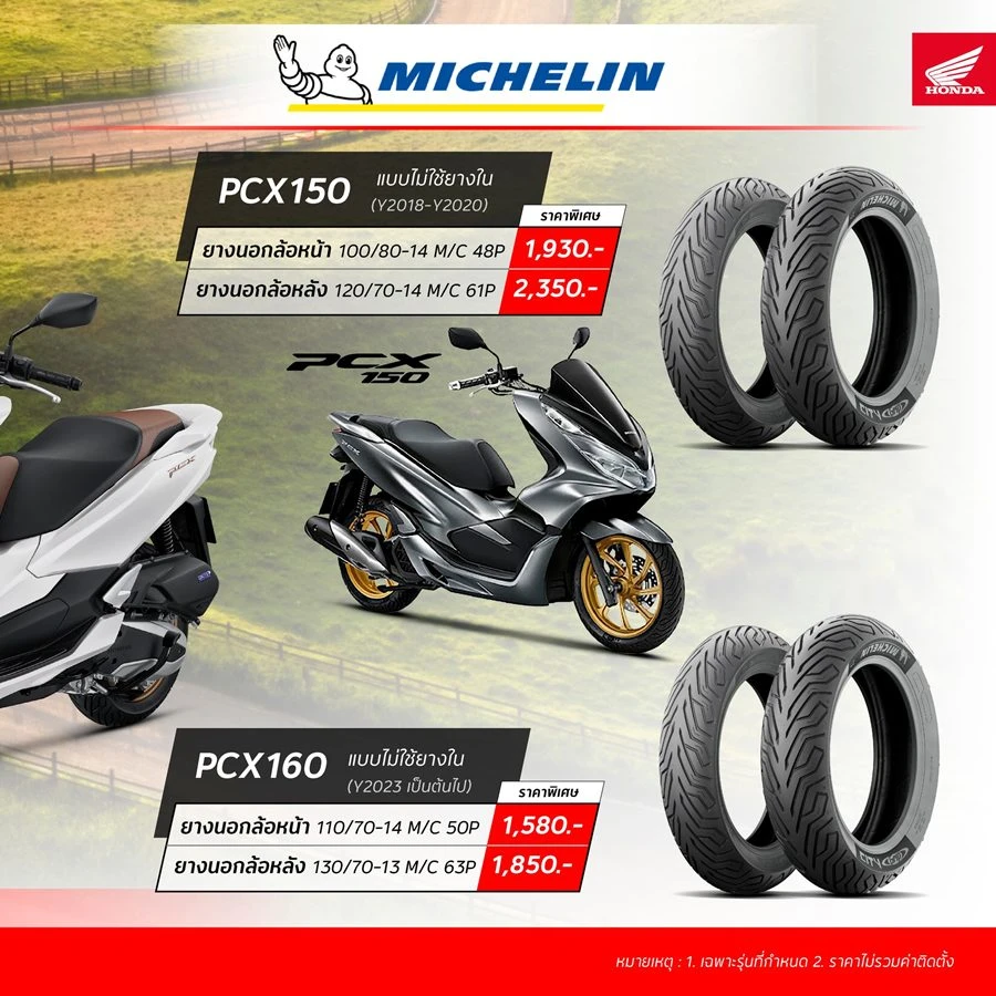 - ยางนอกล้อหลังขนาด 120/70-14 M/C 61P ราคาเส้นละ 2,350 บาท