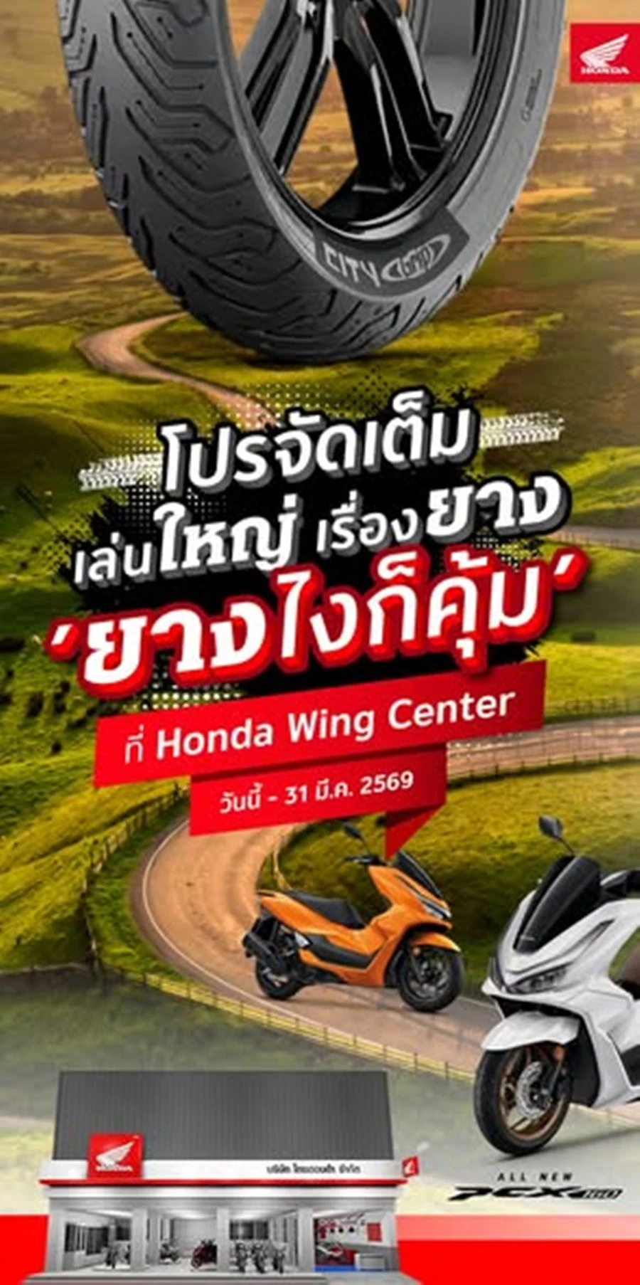 โปรโมชัน ยางไงก็คุ้ม มอบราคาพิเศษตั้งแต่วันนี้จนถึง 31 มีนาคม 2569 เพื่อให้ผู้ใช้รถจักรยานยนต์ฮอนด้ามั่นใจทุกเส้นทาง กับยางคุณภาพที่ช่วยเสริมความปลอดภัยในทุกการเดินทาง