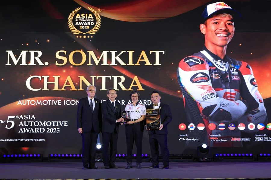 บริษัท ไทยฮอนด้า จำกัด ตอกย้ำบทบาทผู้นำวงการรถจักรยานยนต์ไทย ด้วยการคว้า 2 รางวัลจากเวทีประกาศรางวัลยานยนต์ระดับภูมิภาค The 5th Asia Automotive Award 2025 – Thailand Chapter (AAA) สะท้อนความสำเร็จทั้งด้านผลิตภัณฑ์ และเทคโนโลยีขององค์กรในระดับภูมิภาค ในส่วนของรางวัล Automotive Icon of the Year Award มอบให้แก่ ก้อง-สมเกียรติ จันทรา นักแข่งรถจักรยานยนต์ชาวไทยผู้สร้างประวัติศาสตร์ในศึก MotoGP