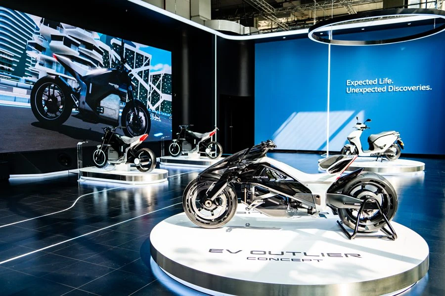 การจัดแสดงโมเดลต้นแบบ EV Outlier ในโซน Future Ride ในครั้งนี้ เป็นการนำเสนอโมเดลเรือธง (Flagship) ที่สะท้อนภาพรวมของกลุ่มผลิตภัณฑ์จักรยานยนต์ไฟฟ้าของฮอนด้า โดยโมเดล EV Outlier นี้ ได้เปิดตัวครั้งแรกของโลกที่งาน Japan Mobility Show 2025 ที่ผ่านมาที่ประเทศญี่ปุ่น และได้รับความสนใจอย่างล้นหลามจากผู้เข้าชมงานทั่วโลก ผสานแนวคิดที่ไม่ได้เป็นเพียงการต่อยอดจากรถจักรยานยนต์ที่มีอยู่ปัจจุบัน แต่เป็นการนำเสนอวิสัยทัศน์ใหม่สำหรับรถจักรยานยนต์ไฟฟ้า ผ่านการดีไซน์ในรูปแบบที่อิสระและยืดหยุ่น ซึ่งเป็นเอกลักษณ์ของรถจักรยานยนต์ไฟฟ้า พร้อมระบบขับเคลื่อนไฟฟ้าคู่หน้า-หลัง เพื่อยกระดับความคล่องตัว ดีไซน์โฉบเฉี่ยว และสมรรถนะที่เหนือชั้น นับเป็นอีกก้าวสำคัญของฮอนด้าในการพัฒนาเทคโนโลยียานยนต์ไฟฟ้า และการออกแบบเพื่อการขับเคลื่อนแห่งอนาคต ตอกย้ำวิสัยทัศน์ใหม่ของโลกรถจักรยานยนต์ไฟฟ้าของฮอนด้า