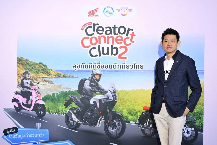 นายนคร วิมลจิตรสอาด ผู้จัดการทั่วไป สายงานการสื่อสารการตลาด บริษัท ไทยฮอนด้า จำกัด กล่าวถึงกิจกรรมนี้ว่า “โครงการ Thai Honda Creator Connect Club เกิดขึ้นจากความมุ่งมั่นของไทยฮอนด้าที่ต้องการผลักดันศักยภาพของคอนเทนต์ครีเอเตอร์ไทยอย่างต่อเนื่อง สำหรับปีที่ 2 นี้ ฮอนด้ามีความยินดีอย่างยิ่งที่ได้ยกระดับโครงการขึ้นอีกขั้น ผ่านความร่วมมือกับการท่องเที่ยวแห่งประเทศไทย (ททท.) เพื่อร่วมผลักดันแคมเปญ ‘สุขทันทีที่เที่ยวไทย’ โดยตั้งใจเปลี่ยนทุกการเดินทางด้วยรถจักรยานยนต์ฮอนด้าให้เป็นเรื่องราวที่สร้างแรงบันดาลใจ ถ่ายทอดเสน่ห์ของเมืองไทยผ่านมุมมองของคนท้องถิ่น พร้อมเชิญชวนครีเอเตอร์ถ่ายทอดความสุขของการท่องเที่ยวในประเทศไทยผ่านแพลตฟอร์มโซเชียลมีเดียต่างๆ นอกเหนือจากโอกาสในการพัฒนาทักษะระดับมืออาชีพจากกูรูแถวหน้าแล้ว โครงการนี้ยังมีบทบาทสำคัญในการส่งต่อความสุขให้ผู้คน กระตุ้นเศรษฐกิจการท่องเที่ยวในประเทศ และตอกย้ำว่าการท่องเที่ยวเมืองไทยสนุกขึ้นได้อย่างแน่นอนเมื่อเดินทางด้วยรถจักรยานยนต์ฮอนด้า”