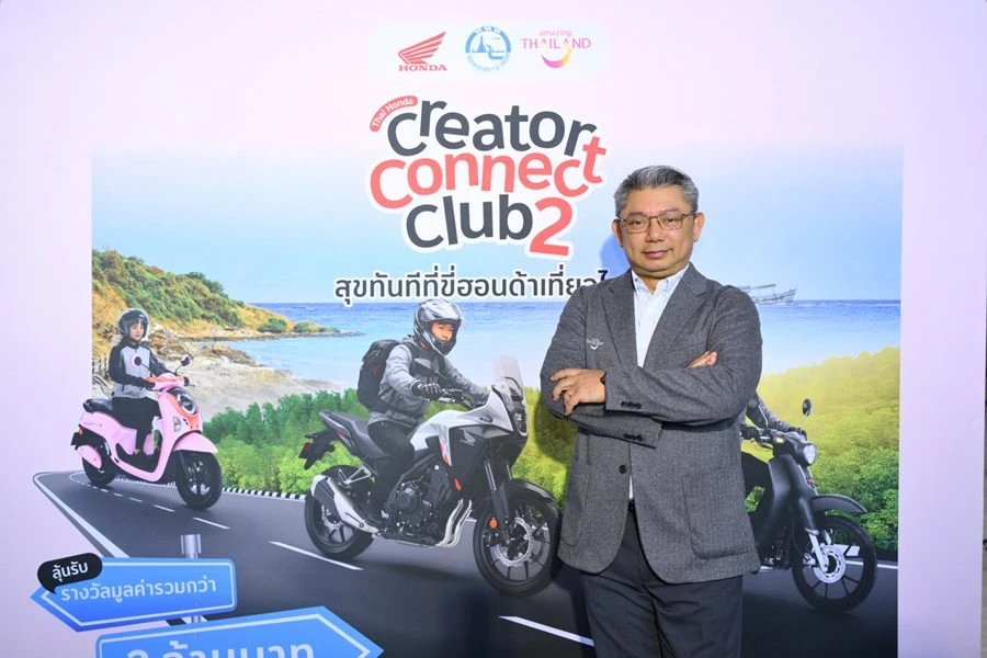 ไทยฮอนด้า ร่วมกับ การท่องเที่ยวแห่งประเทศไทย (ททท.) จัดงานแถลงข่าวแคมเปญร่วม Thai Honda Creator Connect Club ปีที่ 2: สุขทันทีที่ขี่ฮอนด้าเที่ยวไทย เปิดพื้นที่ให้คอนเทนต์ครีเอเตอร์จากทั่วประเทศได้ออกเดินทางถ่ายทอดเสน่ห์การท่องเที่ยวไทยผ่านการขับขี่รถจักรยานยนต์ฮอนด้า ยกระดับทักษะการสร้างคอนเทนต์อย่างมืออาชีพ พร้อมกันนี้ยังได้เปิดตัวครีเอเตอร์ผู้เข้ารอบ 20 คนสุดท้าย จากการค้นหาและคัดสรรสุดเข้มข้นจาก 400 คลิปที่ส่งเข้าประกวดโดยครีเอเตอร์ทั่วประเทศ เพื่อเข้าร่วม Thai Honda Creator Connect Camp สุดเอ็กซ์คลูซีฟ 3 วัน 2 คืน ระหว่างวันที่ 29 – 31 มกราคม 2569 ที่จังหวัดระยอง ซึ่งผู้เข้าร่วมจะได้ร่วมเวิร์กชอปใกล้ชิดกับครีเอเตอร์มืออาชีพ ฝึกฝนการสร้างสรรค์คอนเทนต์ผ่านประสบการณ์การเดินทางจริง และสัมผัสการท่องเที่ยวไทยในมุมมองใหม่ด้วยรถจักรยานยนต์ฮอนด้า ก่อนเข้าสู่กิจกรรมการแข่งขันสร้างสรรค์คอนเทนต์ เพื่อชิงรางวัลรวมมูลค่าทั้งแคมเปญกว่า 2,000,000 บาท