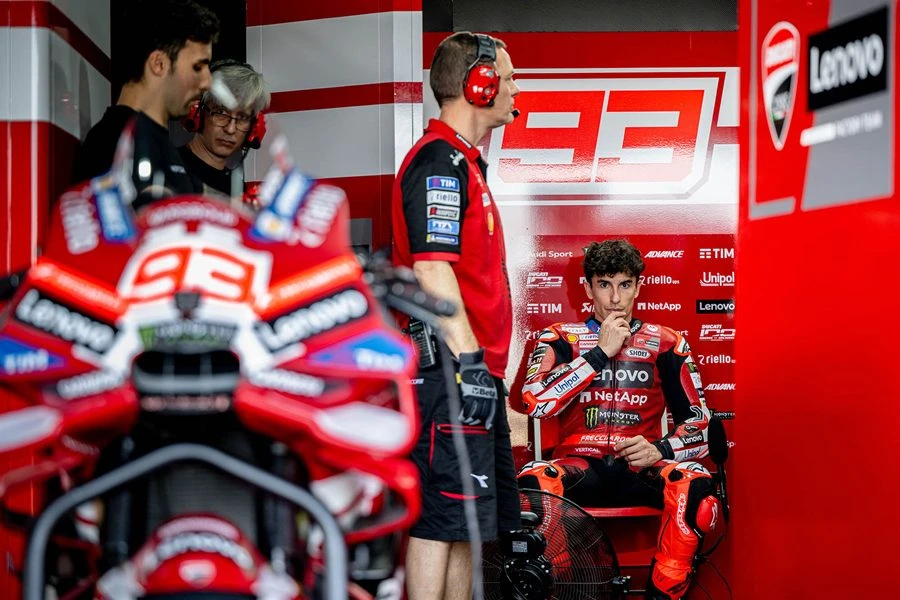 ขณะที่ มาร์ค มาร์เกซ นักบิดสแปนิชแชมป์โลกคนปัจจุบันจาก ดูคาติ เลอโนโว ทีม มีปัญหาอาการปวดท้องรบกวนตลอดทั้ง 2 วัน โดยเขาพลาดล้มรวมถึง 3 ครั้งในการทดสอบครั้งนี้ แต่ยังรั้งอันดับ 3 ด้วยเวลาต่อรอบ 1 นาที 28.836 วินาที ตามหลังผู้นำ 0.168 วินาที ตามด้วยทีมเมทชาวอิตาเลียนอย่าง บันยาญ่า ในอันดับ 4 ตามหลัง 0.215 วินาที