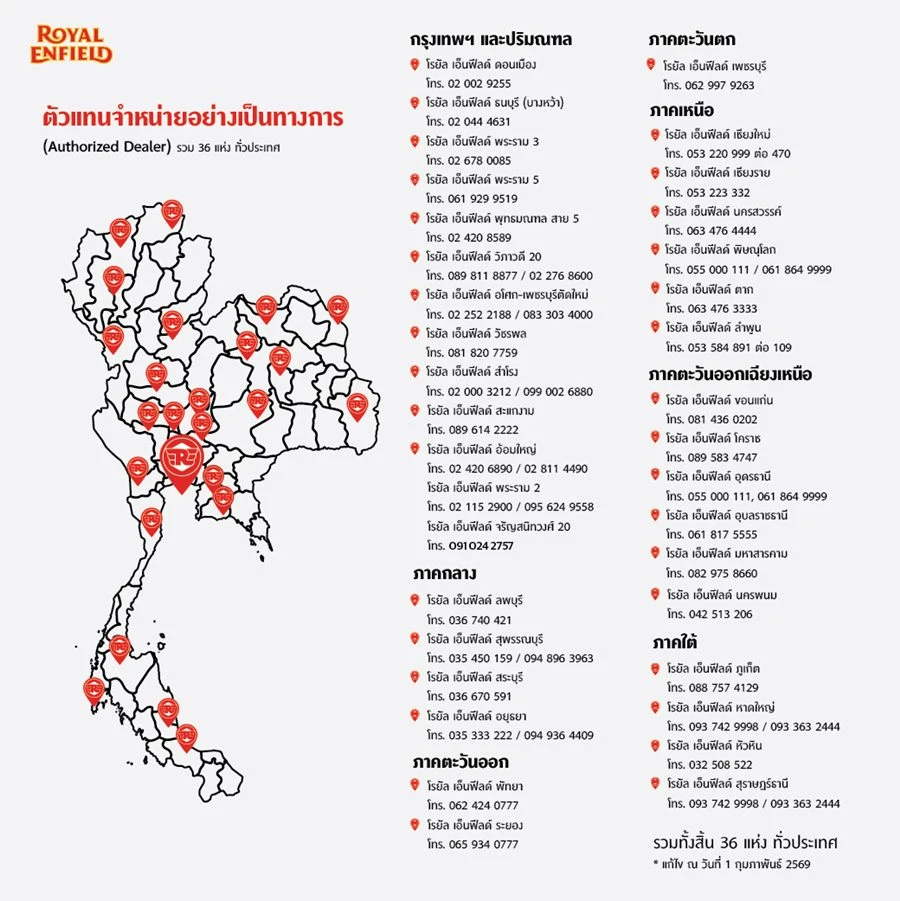 การขยายเครือข่ายโชว์รูมและศูนย์บริการอย่างต่อเนื่อง สะท้อนถึงความมุ่งมั่นของ Royal Enfield ในการอยู่เคียงข้างชาวสองล้อไทยอย่างแท้จริง พร้อมเสริมสร้างความมั่นใจในการเป็นเจ้าของรถ และเดินหน้าสร้างคอมมูนิตี้ของผู้ขี่มอเตอร์ไซค์อย่างยั่งยืน ผ่านโชว์รูม ศูนย์บริการ และกิจกรรมการขี่ที่เชื่อมโยงผู้คนเข้าด้วยกัน