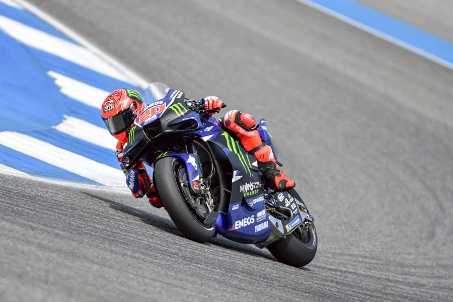 ทัพนักบิดยามาฮ่า ซึ่งนำโดย ฟาบิโอ กวาร์ตาราโร แชมป์โลกโมโตจีพี ปี 2021 เจ้าของหมายเลข 20 และทีมเมทหมายเลข 42 อย่าง อเล็กซ์ รินส์ ทำงานต่อเนื่องกับรถแข่ง M1 V4 จากพื้นฐานข้อมูลที่ได้จากการทดสอบเมื่อสุดสัปดาห์ที่ผ่านมา ผลการซ้อมครั้งแรกปรากฏว่า รินส์ ทำเวลาต่อรอบดีที่สุด 1 นาที 30.268 วินาที ตามหลังผู้นำ 0.992 วินาที รั้งอันดับ 13 ของตารางเวลา ขณะที่ กวาร์ตาราโร จบในอันดับ 18 ด้วยเวลาตามหลัง 1.124 วินาที