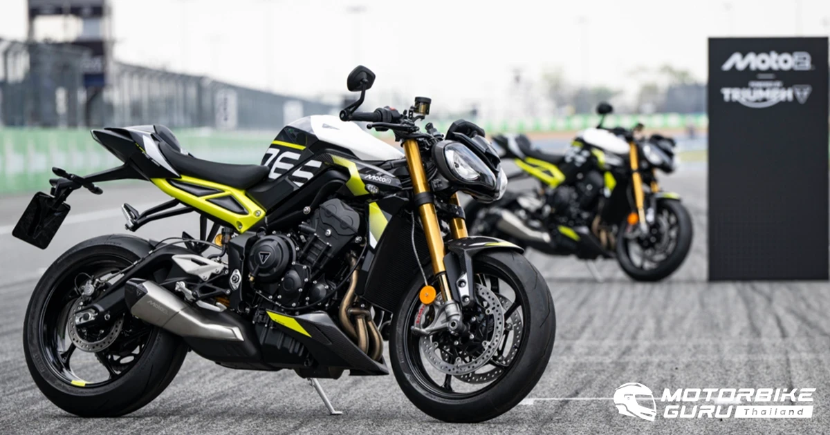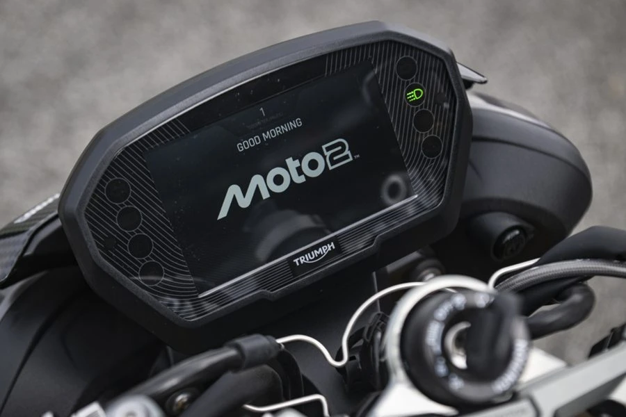 รุ่นที่พัฒนาจากสนามแข่งนี้ มาพร้อมรายละเอียดระดับพรีเมียมที่ได้รับแรงบันดาลใจจากรถแข่ง ไม่ว่าจะเป็นแผงข้างคาร์บอนไฟเบอร์ บังโคลนหน้า แผงใต้ท้องรถ และปลายท่อไอเสีย เพื่อมอบความเบาสบายและภาพลักษณ์ล้ำสมัย มาพร้อมเบาะลายปั๊มนูนสัญลักษณ์ Moto2™ เพื่อเพิ่มการยึดเกาะและการทรงตัวให้กับผู้ขับขี่ ไฟท้ายแบบเลนส์ใส และโลโก้ Moto2™ ที่สลักด้วยเลเซอร์บนท่อไอเสีย โดดเด่นด้วยโทนสี Mineral Grey & Crystal White ตัดกับซับเฟรมด้านท้ายสี Triumph Performance Yellow และแถบล้อหลังสีเดียวกัน สร้างภาพลักษณ์ที่สะท้อนจิตวิญญาณแห่งรถแข่งอย่างชัดเจน