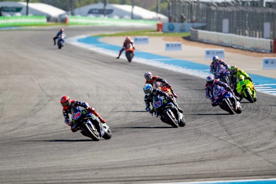 การแข่งขันในรุ่นโมโตจีพี ดวลความเร็วทั้งสิ้น 26 รอบสนาม ท่ามกลางสภาพอากาศร้อนจัดและแทร็กที่ท้าทาย ส่งผลให้การบริหารจัดการยางและจังหวะการแข่งขันมีความสำคัญอย่างยิ่ง