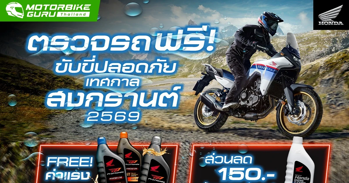 ฮอนด้าบิ๊กไบค์ ตอกย้ำความสำคัญของการขับขี่ปลอดภัย ต้อนรับเทศกาลสงกรานต์ 2569 ด้วยแคมเปญ “ตรวจรถฟรี ขับขี่ปลอดภัย” มอบบริการตรวจเช็กสภาพรถฟรีพร้อมสิทธิพิเศษสำหรับผู้ขับขี่ Honda BigBike เพื่อเตรียมความพร้อมของรถก่อนออกเดินทางในช่วงวันหยุดยาว ตั้งแต่วันนี้ – 31 มีนาคม 2569 ผู้ขับขี่ Honda BigBike สามารถนำรถเข้ารับบริการได้ที่ Honda BigWing ทั่วประเทศ พร้อมรับสิทธิพิเศษตามเงื่อนไขที่กำหนด