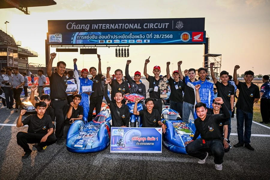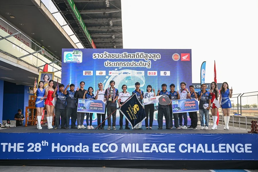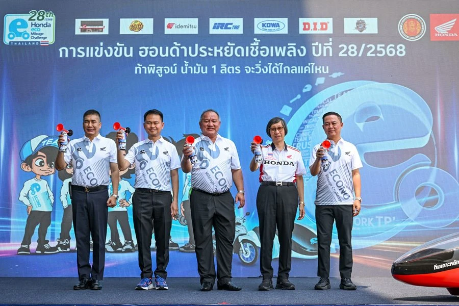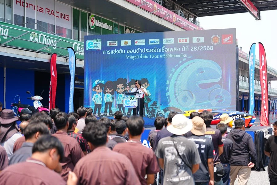 ไทยฮอนด้า ร่วมกับ สำนักงานคณะกรรมการการอาชีวศึกษา กระทรวงศึกษาธิการ และตัวแทนจำหน่ายรถจักรยานยนต์ฮอนด้าทั่วประเทศ จัดการแข่งขัน “ฮอนด้าประหยัดเชื้อเพลิง (Honda Eco Mileage Challenge)” ครั้งที่ 28 ประจำปีการศึกษา 2568 เมื่อวันที่ 25–26 มีนาคมที่ผ่านมา ณ สนามช้าง อินเตอร์เนชันแนล เซอร์กิต จังหวัดบุรีรัมย์ ภายใต้กติกาใหม่ โดยมุ่งเน้น “ความปลอดภัย” ควบคู่กับ “ประสิทธิภาพการใช้พลังงาน” ส่งผลให้การแข่งขันเข้มข้นยิ่งขึ้น โดยในปีนี้ วิทยาลัยสารพัดช่างพิษณุโลก พลิกกลับมาคว้าแชมป์สถิติสูงสุดประเภทรถประดิษฐ์ หลังคว้าอันดับ 2 ปีการศึกษา 2567 พร้อมทำลายสถิติประหยัดเชื้อเพลิงสูงสุดด้วยตัวเลข 1,023.613 กิโลเมตรต่อลิตร ท่ามกลางการเข้าร่วมของเยาวชนกว่า 289 ทีมทั่วประเทศ นำโดย ดร.อารักษ์ พรประภา ประธานบริษัท ไทยฮอนด้า จำกัด พร้อมด้วย นายยศพล เวณุโกเศศ เลขาธิการคณะกรรมการการอาชีวศึกษา เป็นประธานในพิธีเปิด