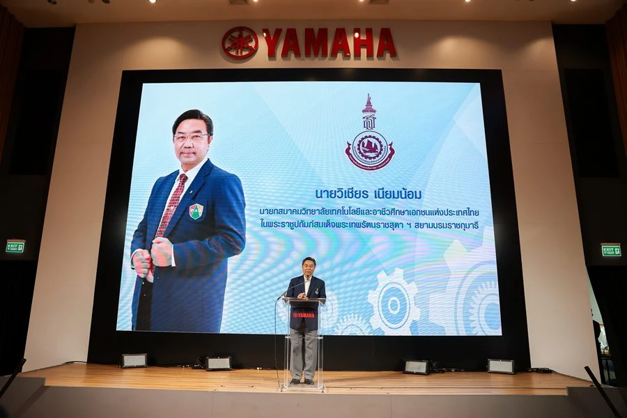 มร.ฮิเดฮิโกะ ทาคากิ รองประธานกรรมการบริหาร พร้อมด้วย นายกัมพล พรสูงส่ง รองผู้จัดการใหญ่ด้านการขาย บริการ และอะไหล่ และคณะผู้บริหารระดับสูง บริษัท ไทยยามาฮ่ามอเตอร์ จำกัด ถ่ายภาพร่วมกับ นายวิเชียร เนียมน้อม นายกสมาคมวิทยาลัยเทคโนโลยีและอาชีวศึกษาเอกชนแห่งประเทศไทย ในพระราชูปถัมภ์ สมเด็จพระเทพรัตนราชสุดาฯ สยามบรมราชกุมารี ในพิธีเปิดการแข่งขันทักษะวิชาชีพ สาขาวิชารถจักรยานยนต์ ระดับประเทศ ซึ่งถือเป็นเวทีสำคัญในการพัฒนาทักษะวิชาชีพของนักศึกษาอาชีวศึกษาไทย ให้สอดคล้องกับความต้องการของภาคอุตสาหกรรม