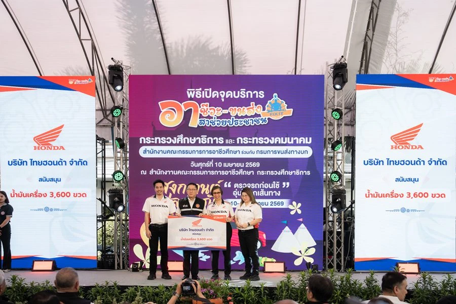 ไทยฮอนด้า ร่วมสนับสนุนโครงการ “อาชีวะ-ขนส่ง อาสาช่วยประชาชน” ช่วงเทศกาลสงกรานต์ 2569 ภายใต้แนวคิด “สงกรานต์ปลอดภัย ตรวจรถก่อนใช้ อุ่นใจทุกเส้นทาง” ในโอกาสนี้ ดร.อารักษ์ พรประภา ประธาน บริษัท ไทยฮอนด้า จำกัด ได้ร่วมมอบน้ำมันเครื่อง Honda Protech Gold สำหรับรถจักรยานยนต์ จำนวน 3,600 ขวด มูลค่ากว่า 360,000 บาท พร้อมผนึกความร่วมมือกับพันธมิตรภาคเอกชน สนับสนุนการดำเนินโครงการผ่านจุดบริการ Fix it Center กว่า 150 จุดทั่วประเทศ ตรวจเช็กและบำรุงรักษารถให้แก่ประชาชนก่อนออกเดินทางกลับภูมิลำเนาโดยไม่เสียค่าใช้จ่าย