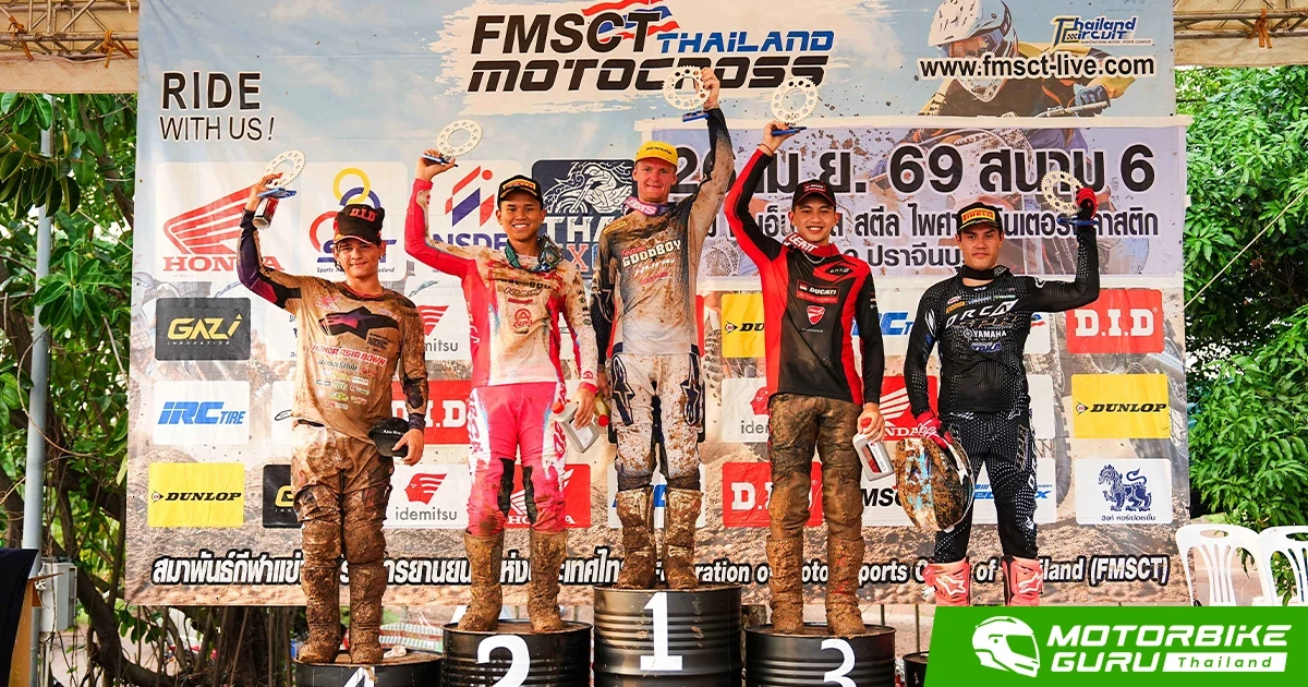 ขณะที่ “คิ้วท์” พันธกานต์ บุญชาลี หมายเลข 17 ทีม Honda Asia Bowin Idemitsu S Motor เข้าเส้นชัยมาเป็นอันดับที่ 5 โดยคะแนนสะสม 2 ดาวรุ่งฮอนด้าในรุ่น MX-2 Pro “ไตรตั้น-เตโชดม” รั้งอันดับที่ 3 ด้วยคะแนนสะสม 92 คะแนน โดยมี “คิ้วท์-พันธกานต์” รั้งอันดับที่ 4 ด้วยคะแนนสะสม 70 คะแนน ทั้งนี้ โปรแกรมการแข่งขัน FMSCT Thailand Motocross 2026 สนามที่ 7 จะไปแข่งขันกันที่สนาม ซิลเวอร์ร็อค (Silver Rock) จังหวัดเลย ในวันที่ 31 พฤษภาคม 2569