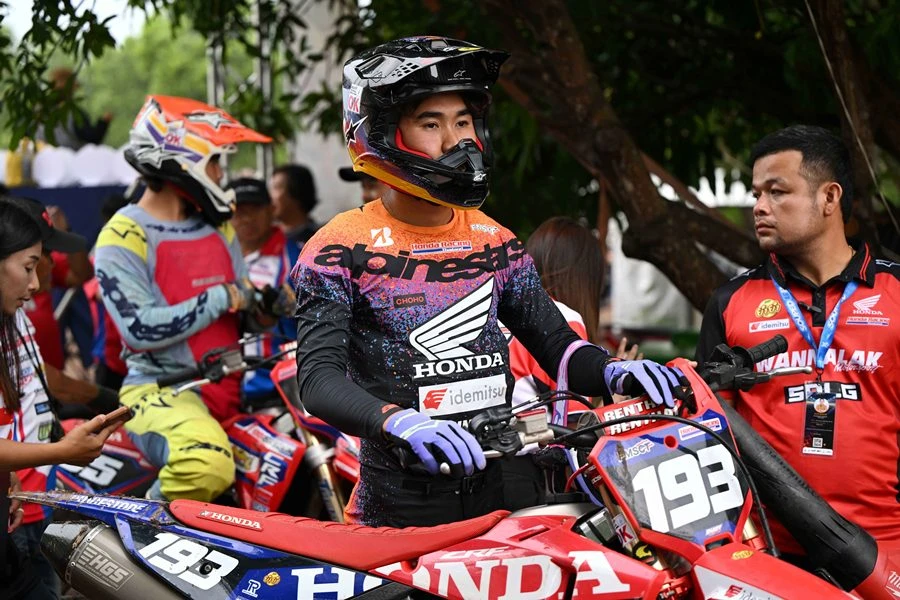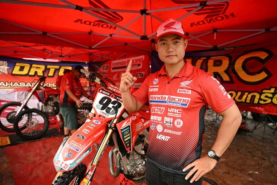 ขุนพลนักบิด Honda CRF450R ต่อสู้เกมสุดหิน รุ่นท็อปสุดของรายการ Premier MX-1 กับสภาพสนามที่เปลี่ยนแปลงตลอดเวลา ทำผลงานบวกแต้มในตารางคะแนนสะสม พร้อมกับการแจ้งเกิดอย่างสวยงามของดาวรุ่งฮอนด้า “พีเอ-ปรีดาอนันต์” ด้วยการคว้าโพเดียมอันดับที่ 4 ในศึกทางฝุ่นชิงแชมป์ประเทศไทยรายการ FMSCT Thailand Motocross 2026 สนามที่ 6 พีเอ็นเอส สตีล ไพศาล อินเตอร์พลาสติก จังหวัดปราจีนบุรี เมื่อวันที่ 26 เมษายน 2569 ที่ผ่านมา