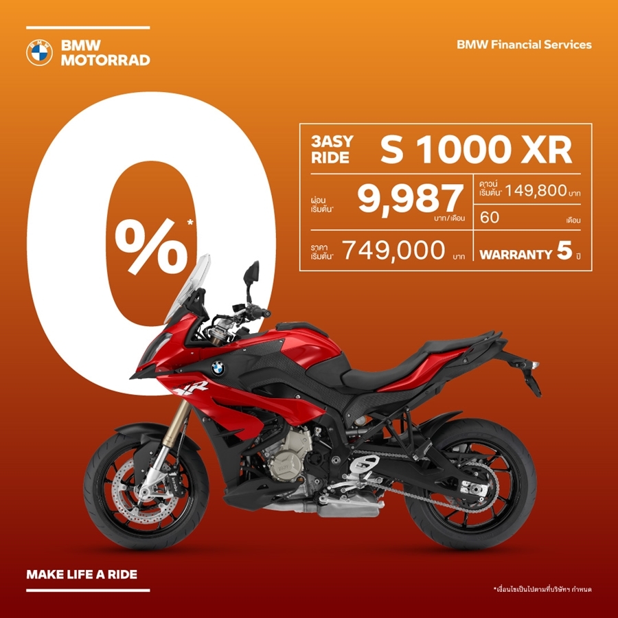สปอร์ตได้อย่างเต็มที่ด้วยเทคโนโลยีที่สามารถปรับสมรรถนะของรถได้ตามสภาพการขับขี่ ทำให้ BMW S 1000 XR เป็นมอเตอร์ไซค์สปอร์ตแอดเวนเจอร์ที่เหนือกว่าใคร เป็นเจ้าของวันนี้ ในราคาเริ่มต้นที่ 749,000 บาท ดาวน์เริ่มต้นที่ 149,800 บาท ผ่อนเริ่มต้น 9,987 บาท/เดือน พร้อมข้อเสนอพิเศษพฤศจิกายนนี้