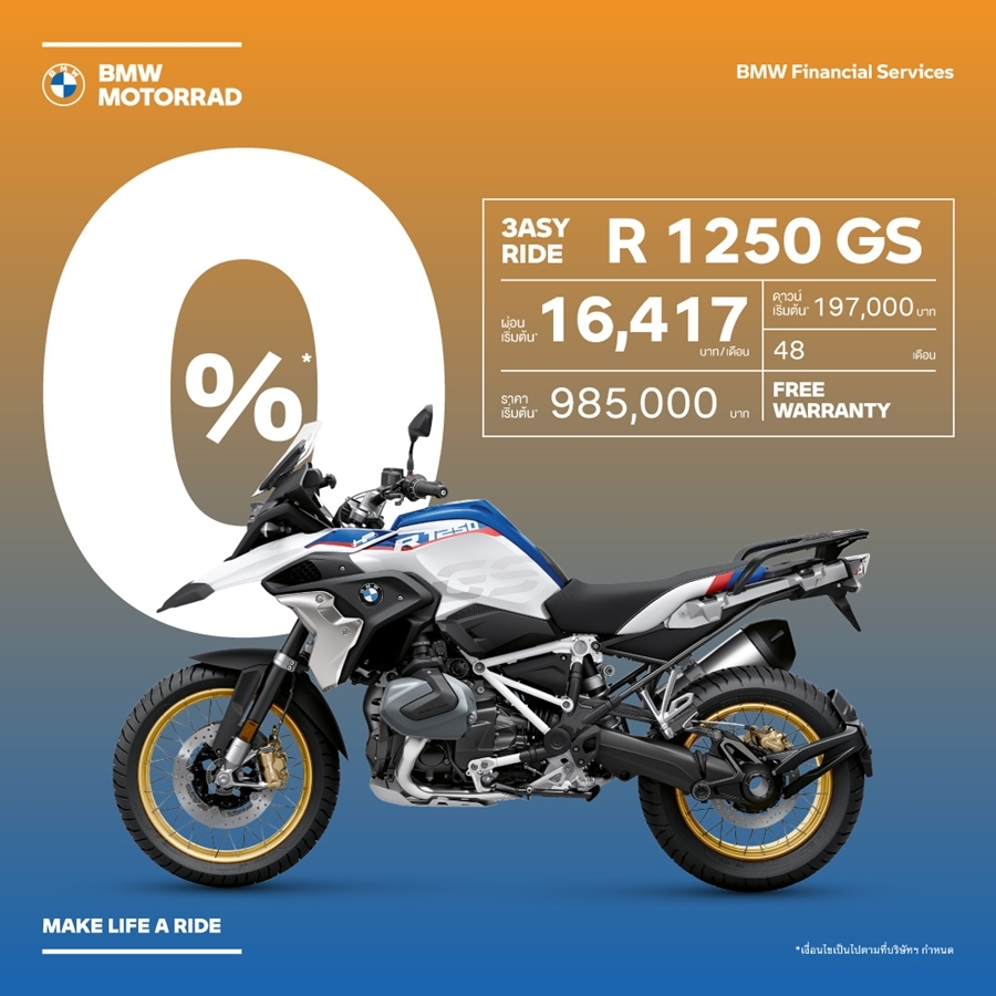 ให้คำว่าอุปสรรคเป็นเพียงตัวหนังสือ แล้วยึดถือวิถีแห่ง GS กับมอเตอร์ไซค์ที่เกิดมาเพื่อการผจญภัย BMW R 1250 GS เป็นเจ้าของวันนี้ ในราคาเริ่มต้นที่ 985,000 บาท ดาวน์เริ่มต้นที่ 197,000 บาท ผ่อนเริ่มต้น 16,417 บาท/เดือน พร้อมข้อเสนอพิเศษพฤศจิกายนนี้