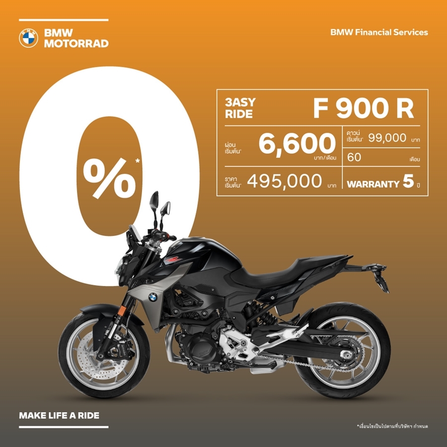 ดุดัน ปราดเปรียว ใส่เอกลักษณ์ของมอเตอร์ไซค์โรดสเตอร์ไว้อย่างครบถ้วนใน BMW F 900 R ราคาเริ่มต้นที่ 495,000 บาท ดาวน์เริ่มต้นที่ 99,000 บาท ผ่อนเริ่มต้นที่ 6,600 บาท/เดือน พร้อมข้อเสนอพิเศษพฤศจิกายนนี้