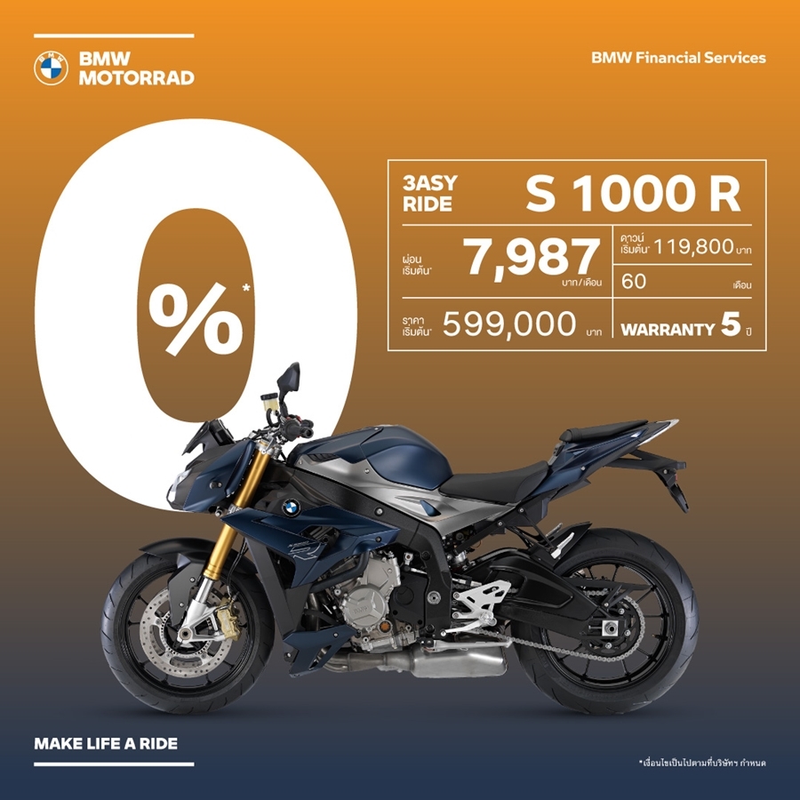 แบบฉบับของความสปอร์ต ที่มาพร้อมความสนุกทั้งในและนอกสนามกับ BMW S 1000 RR เป็นเจ้าของวันนี้ในราคาเริ่มต้นที่ 890,000 บาท ดาวน์เริ่มต้นที่ 267,000 บาท ผ่อนเริ่มต้น 9,800 บาท/เดือน พร้อมข้อเสนอพิเศษพฤศจิกายนนี้