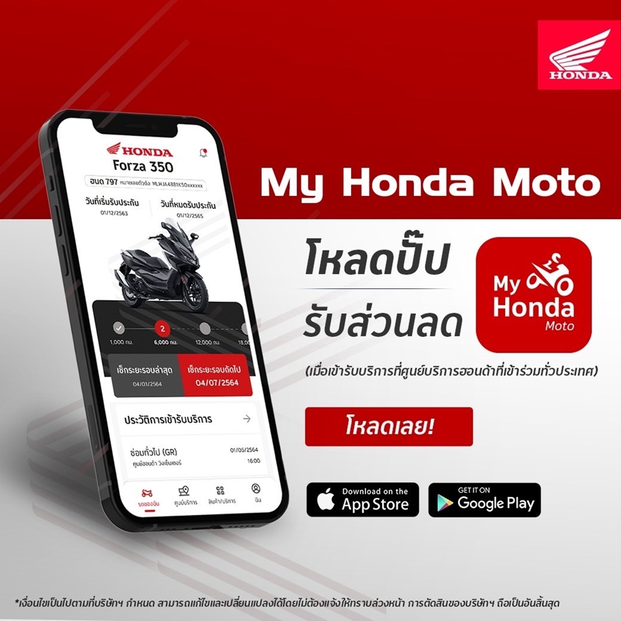 ฮอนด้าจัดโปรพิเศษเพียงดาวน์โหลดแอปฯ My Honda Moto รับส่วนลดทันที!