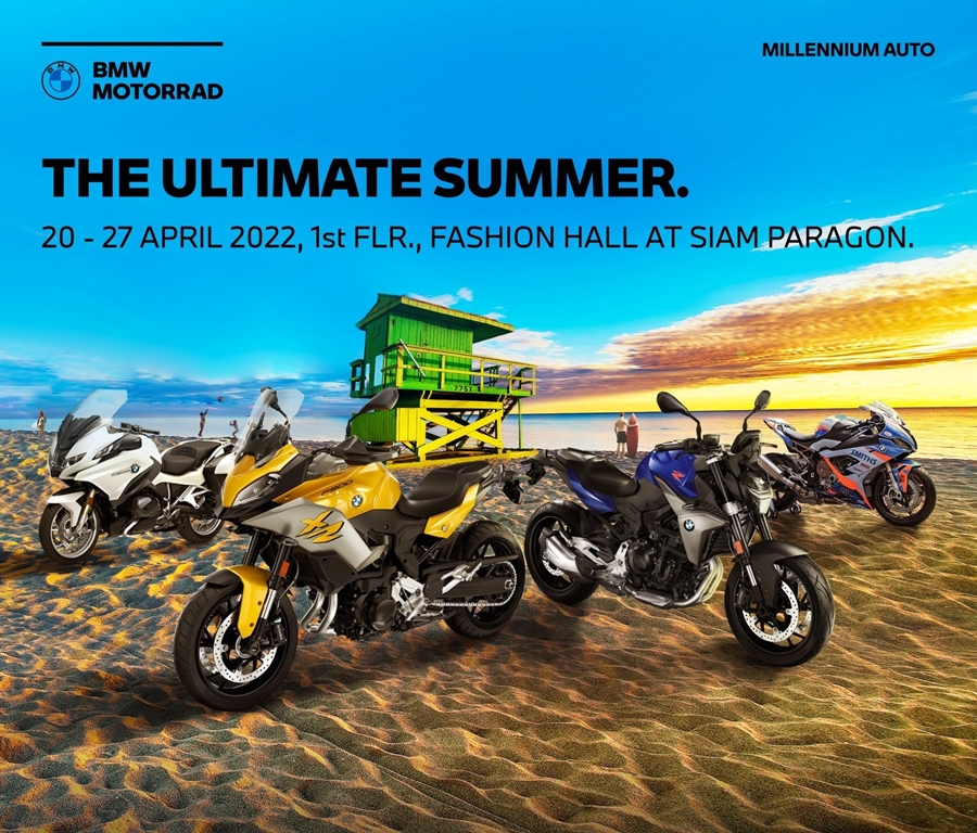บริษัท มิลเลนเนียม ออโต้ กรุ๊ป จำกัด ผู้จำหน่ายมอเตอร์ไซค์ บีเอ็มดับเบิลยู มอเตอร์ราด อย่างเป็นทางการ จัดหนักรับซัมเมอร์ ด้วยข้อเสนอสุดร้อนแรงที่งาน THE ULTIMATE SUMMER BY MILLENNIUM AUTO ยกทัพยนตรกรรมระดับพรีเมียม มาให้ลูกค้าได้สัมผัสและจับจอง ระหว่างวันที่ 20-27 เมษายนนี้ บริเวณแฟชั่นฮอลล์ ชั้น 1 ศูนย์การค้าสยามพารากอน