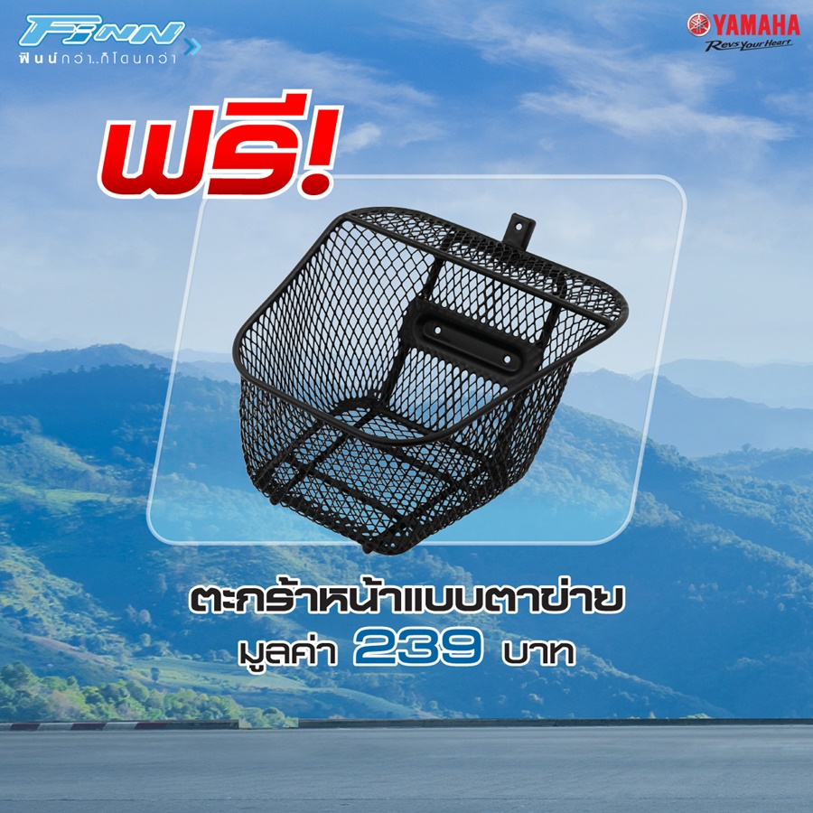 บริษัท ไทยยามาฮ่ามอเตอร์ จำกัด ผู้ผลิตและจำหน่ายรถจักรยานยนต์คุณภาพชั้นนำของประเทศ จัดโปรโมชันส่งเสริมการขายรถจักรยานยนต์ครอบครัวสุดประหยัด ฟินน์ทุกที่...ฟรีทุกคน เมื่อซื้อ ยามาฮ่าฟินน์ ระหว่างวันที่ 1 กุมภาพันธ์ – 30 เมษายน 2566 รับของแถมฟรีทันที 3 รายการ รวมมูลค่า 1,097 บาท ได้แก่ ตะกร้าหน้าแบบตาข่าย มูลค่า 239 บาท, กันลายแบบตาข่าย มูลค่า 168 บาท และตะแกรงหลัง มูลค่า 690 บาท